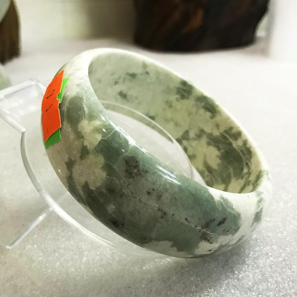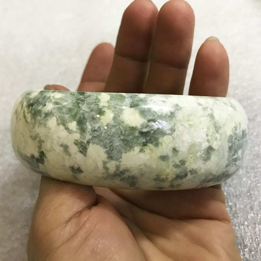 Vòng tay Nữ Đá Cẩm Thạch mới TR Lý 57 mm x cọng 7,5mm Màu Xanh lý tươi trắng 2 bên đều vòng đẹp Nữ 55kg - 64kg đeo đẹp món quà tặng chính mình