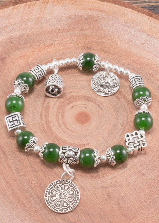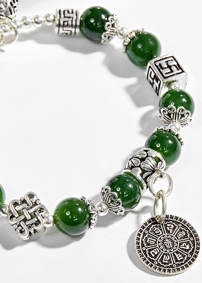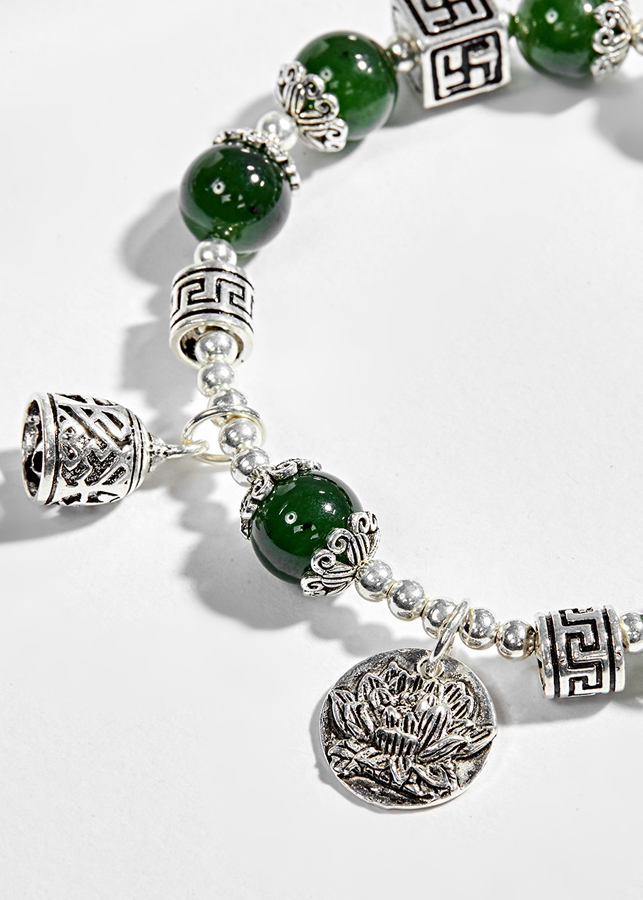 Vòng tay đá ngọc bích phối charm bạc - Hợp mệnh mộc, mệnh hỏa | Ngọc Quý Gemstones |