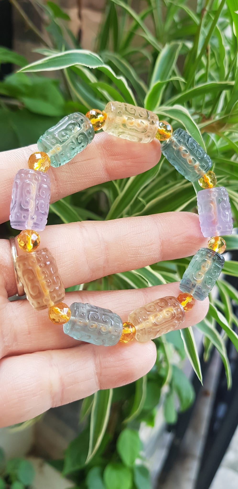 Vòng Tay nữ charm cao cấp Fluorit tự nhiên đa sắc kiểu hạt lu 10mm phối tròn đẹp sang Shop Sunny Q8
