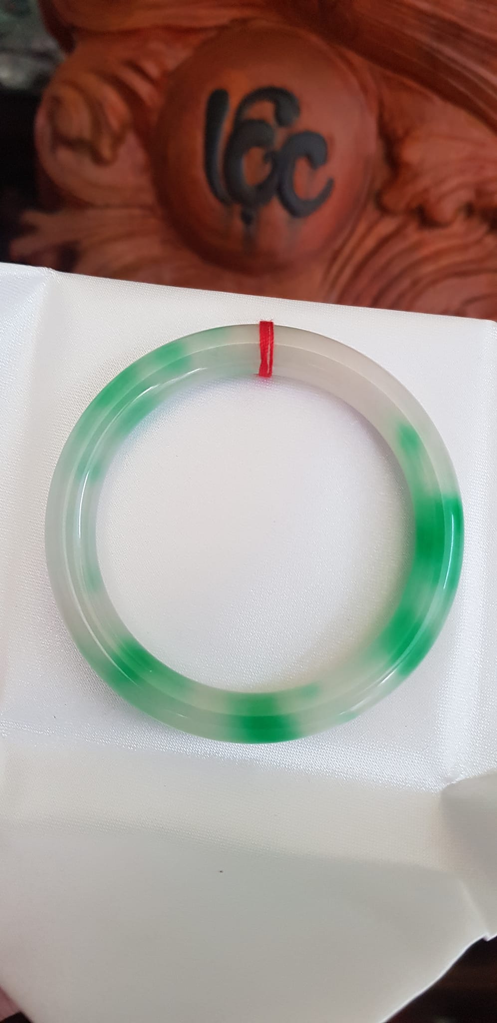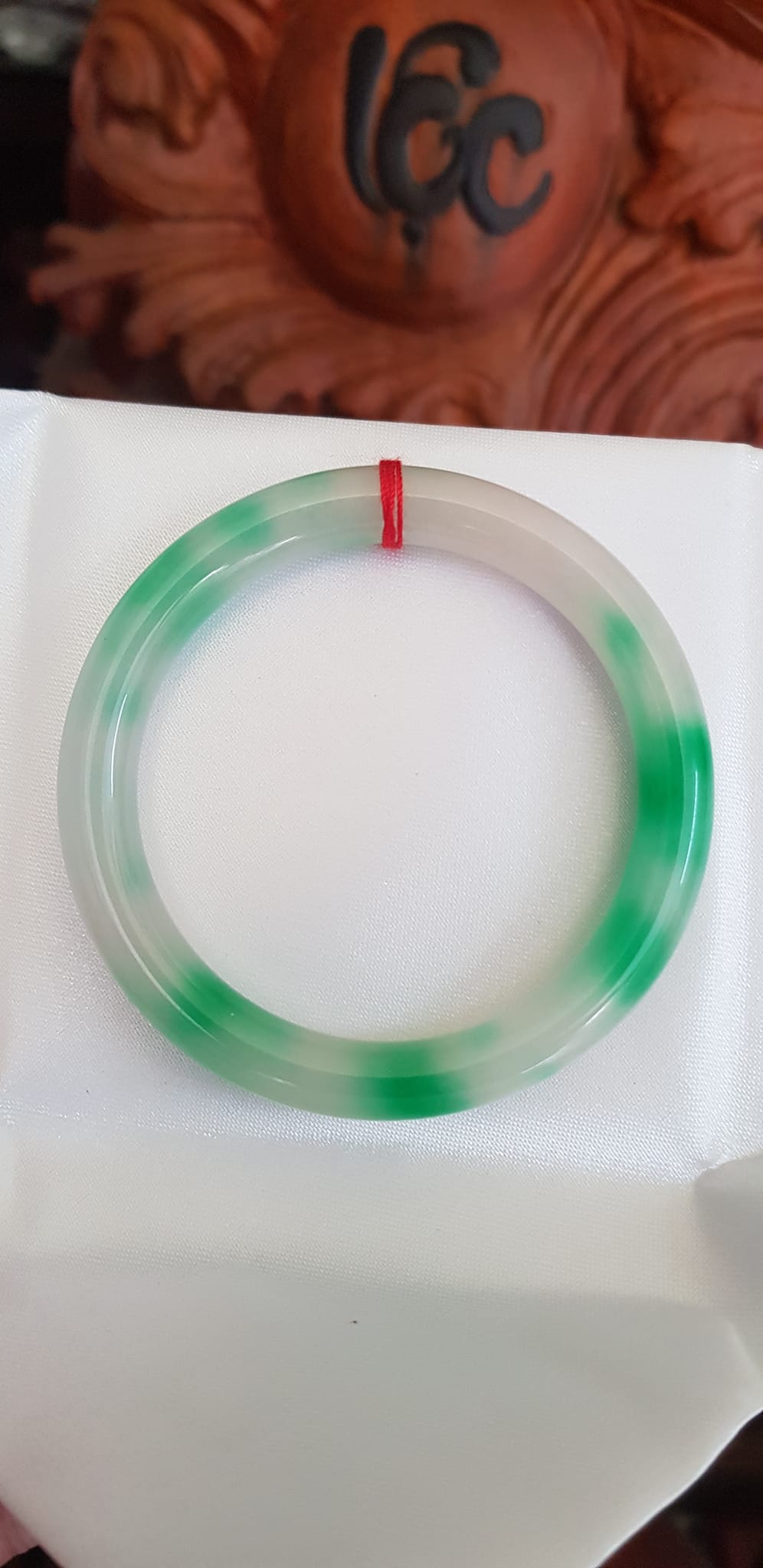 Vòng tay Nữ Đá Cẩm Thạch mới TR Lý 57 mm x cọng 7,5mm Màu Xanh lý tươi trắng 2 bên đều vòng đẹp Nữ 55kg - 64kg đeo đẹp món quà tặng chính mình