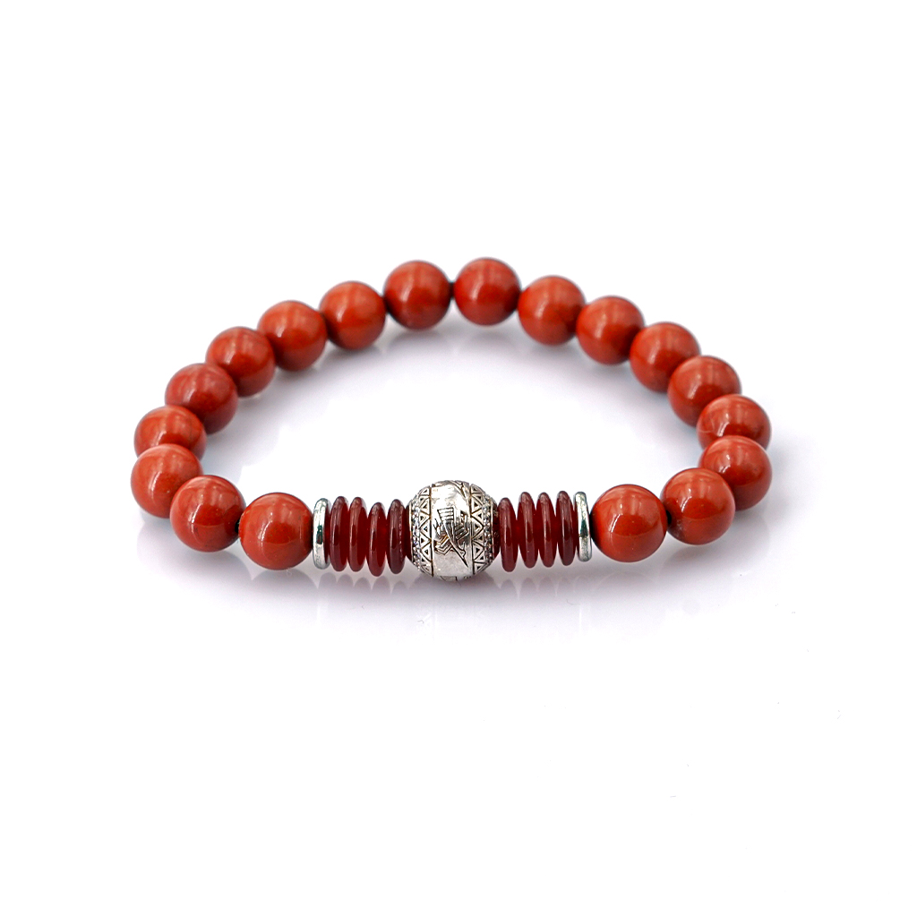 Loại tinh thể: Jasper đỏ Kích cỡ: 8mm Lu thống Bạc đính ngọc Đỏ.