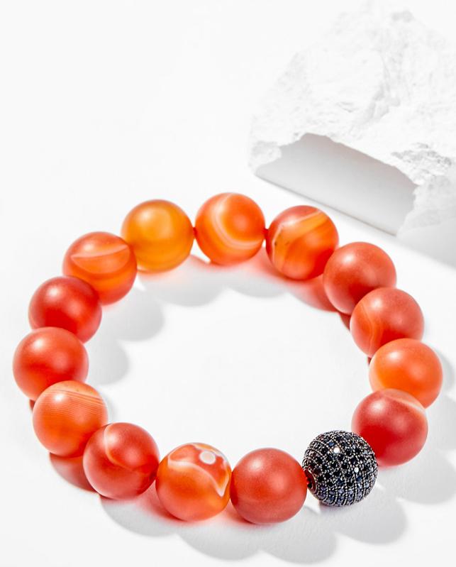 ✨Vòng Tay Phong Thủy Nam Đá Mã Não Đỏ Nhám Phối Charm Cầu Đính Đá (14mm) Mệnh Hỏa, Thổ Ngọc Quý Gemstones