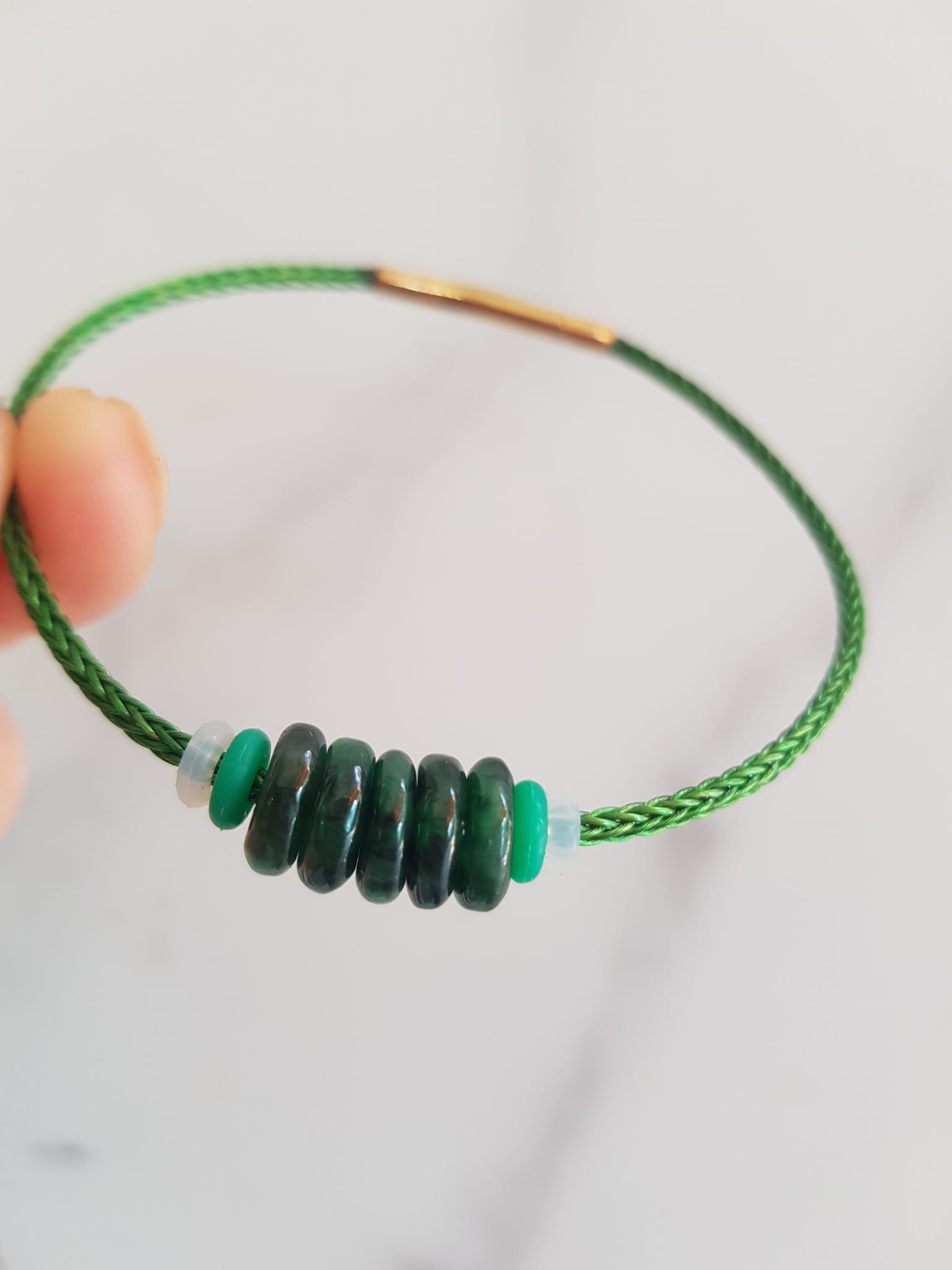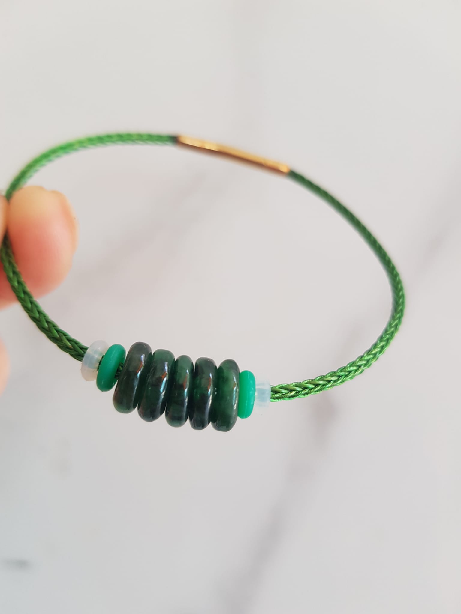 ✨Vòng tay phong thủy nữ charm kiểu 5 đồng tiền Xanh Đậm dây xanh may mắn Đá cẩm thạch tự nhiên xanh đậm đẹp phối dây màu xan có khoen chắc chắn Hợp nữ mệnh thủy mộc hỏa ạ