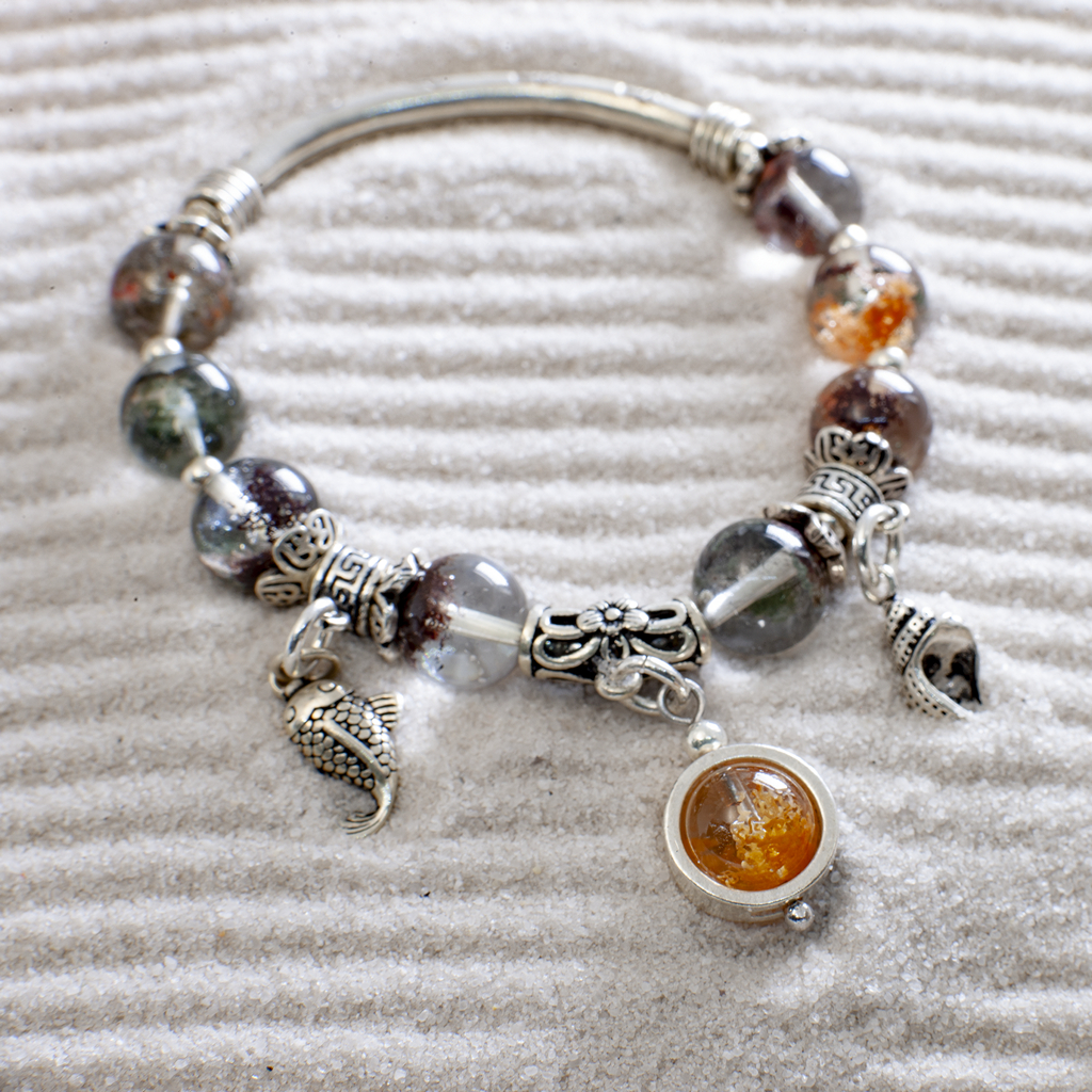 Vòng tay phongg thủy Mắt hổ vàng tâm 8mm + Thạch Anh Tóc nâu by Anqlo là sản phẩm được chế tác tinh xảo, có độ hoàn thiện cao bởi các nghệ nhân lâu năm