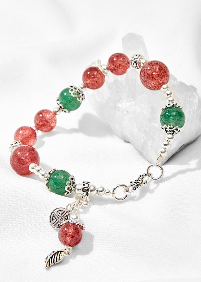 Hầu hết ai cũng biết tới đá thạch anh hồng nhưng lại không để ý đến sự tồn tại của đá thạch anh hồng dâu tây. Có vài nét gần giống với đá thạch anh tóc và đá thạch anh thông thường, chúng kết hợp ăn ý với nhau và tạo ra một chất liệu vô cùng hoàn hảo để chế tác Vòng Tay Thạch Anh Dâu Phối Lá bạc. Đá thạch anh nói chung và loại màu hồng dâu tây nói riêng đầu có ý nghĩa nhất định trong phong thủy, cũng như có tác dụng chữa bệnh và giảm stress, nên khá được ưa chuộng trên thị trường.