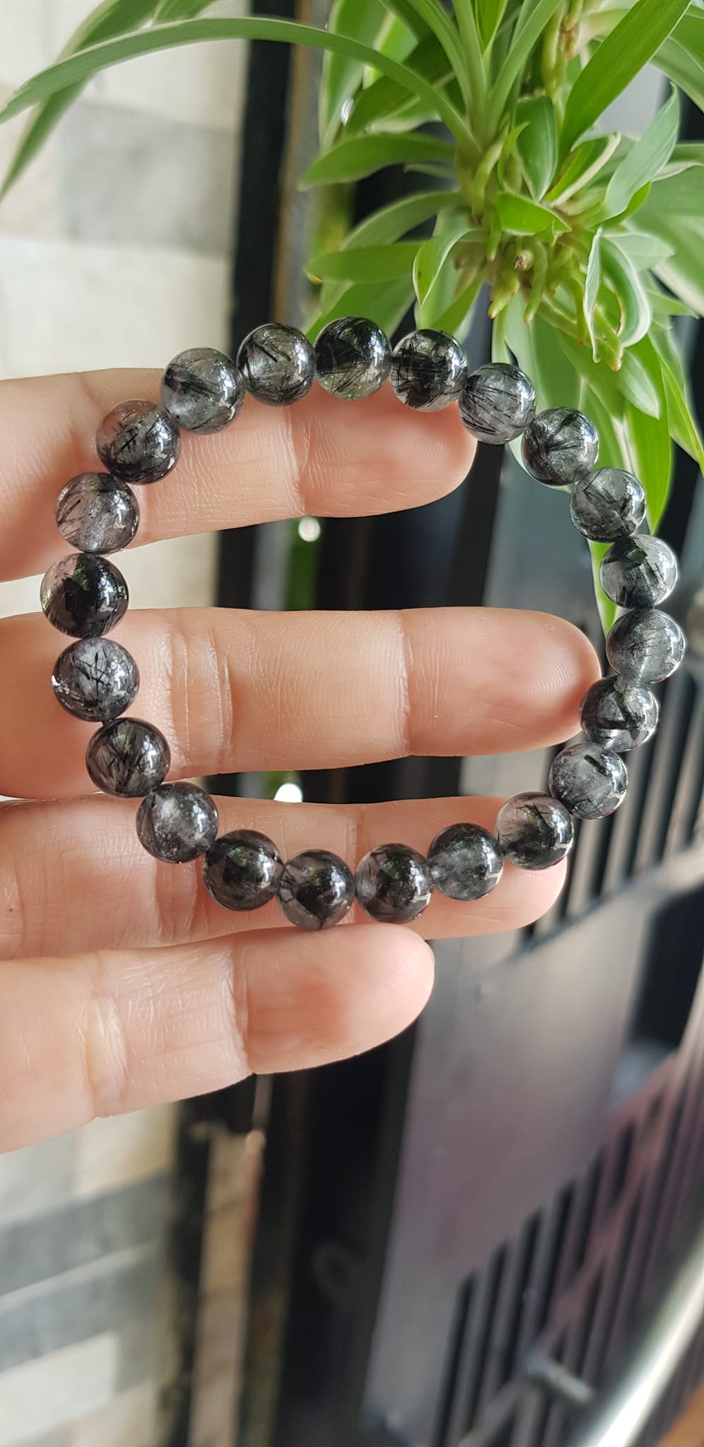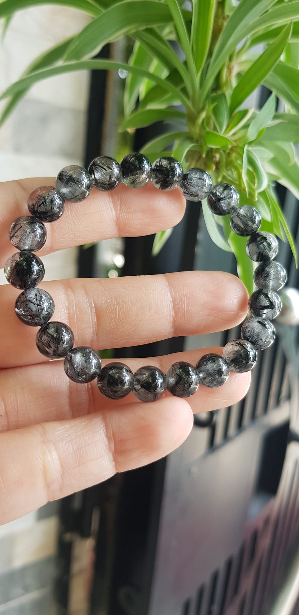 Vòng Tay Phong Thủy THẠCH ANH TÓC ĐEN cho Mệnh Mộc - Thủy