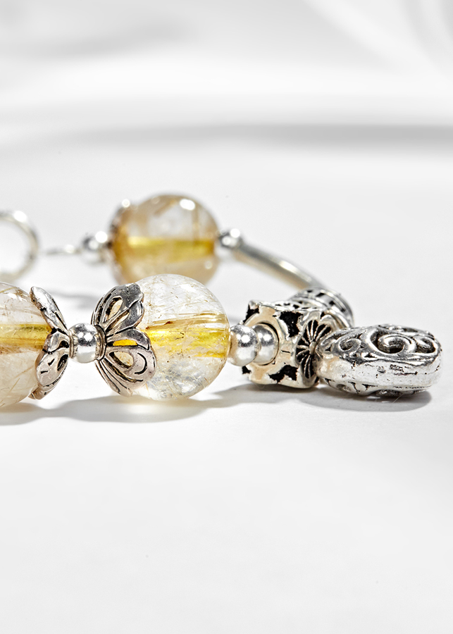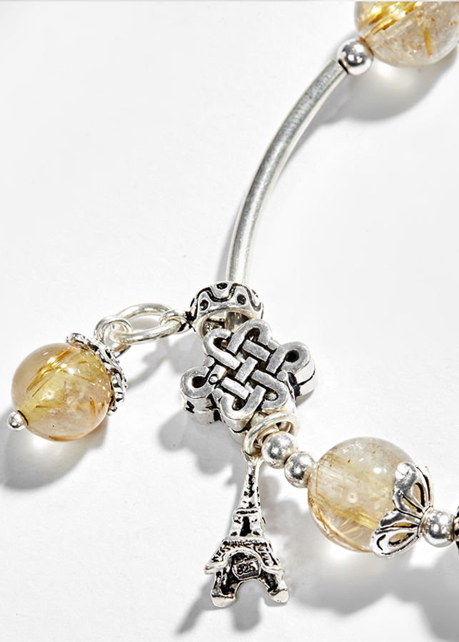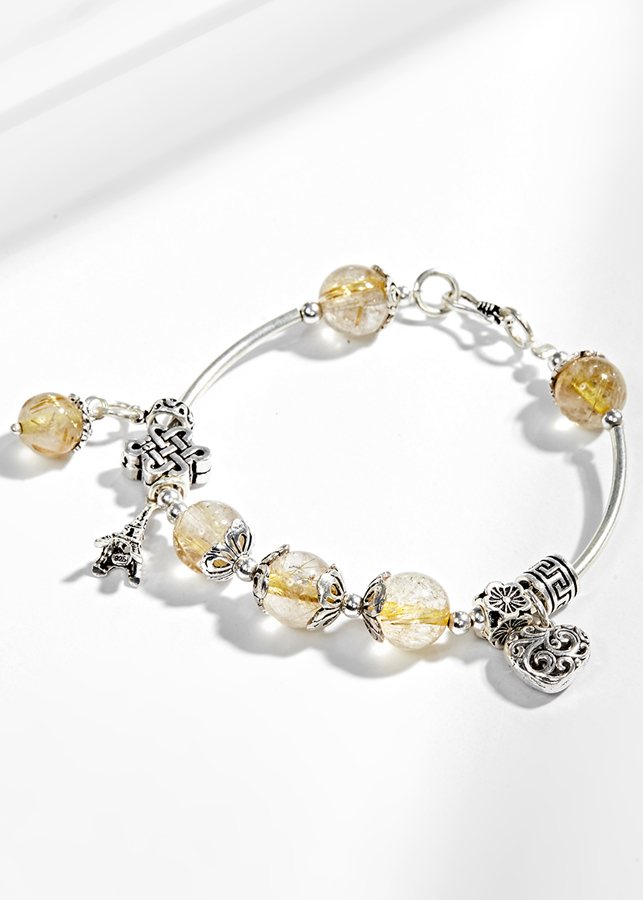 Vòng tay đá thạch anh tóc vàng phối charm bạc - Hợp mệnh kim, thủy | Ngọc Quý Gemstones |