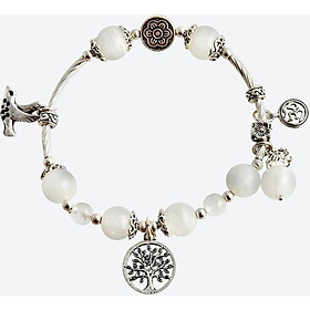 VÒNG TAY ĐÁ XÀ CỪ TRẮNG (MOONSTONE) CHARM DREAMCATCHER: Hình tròn của Dreamcatcher biểu tượng cho vòng tròn cuộc sống,như trái đất sinh mệnh, không có điểm khởi đầu cũng không có điểm kết thúc.