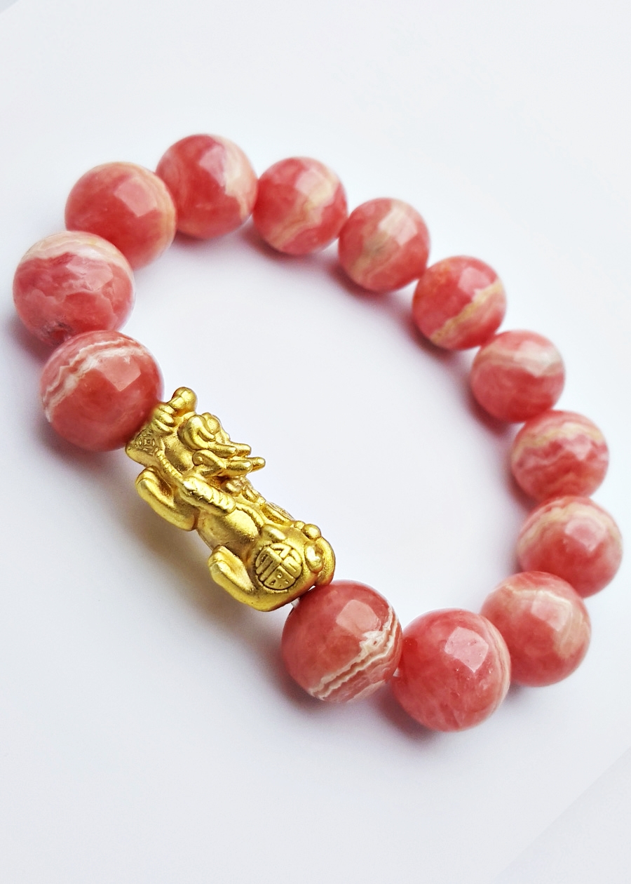 Mua tại TiktokVòng Tay Tỳ Hưu Đá Đào Hoa Rhodochrosite 14mm