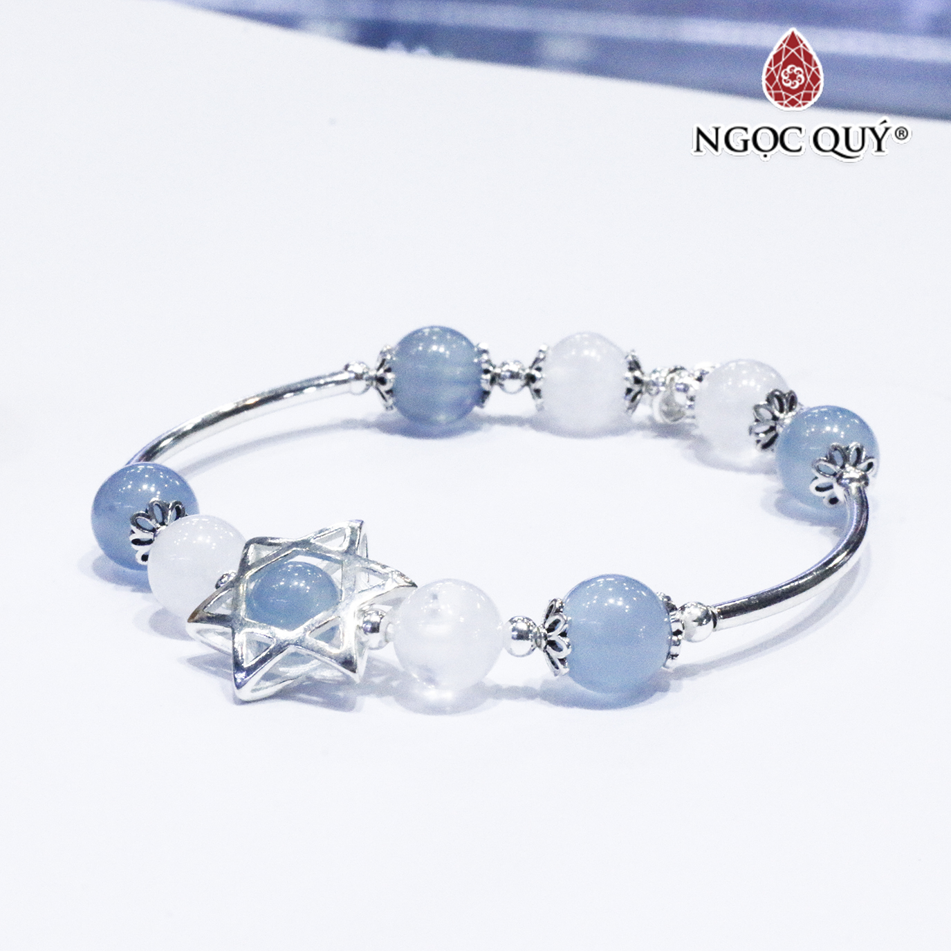 VÒNG TAY THẠCH ANH ƯU LINH TRẮNG PHỐI AQUAMARINE