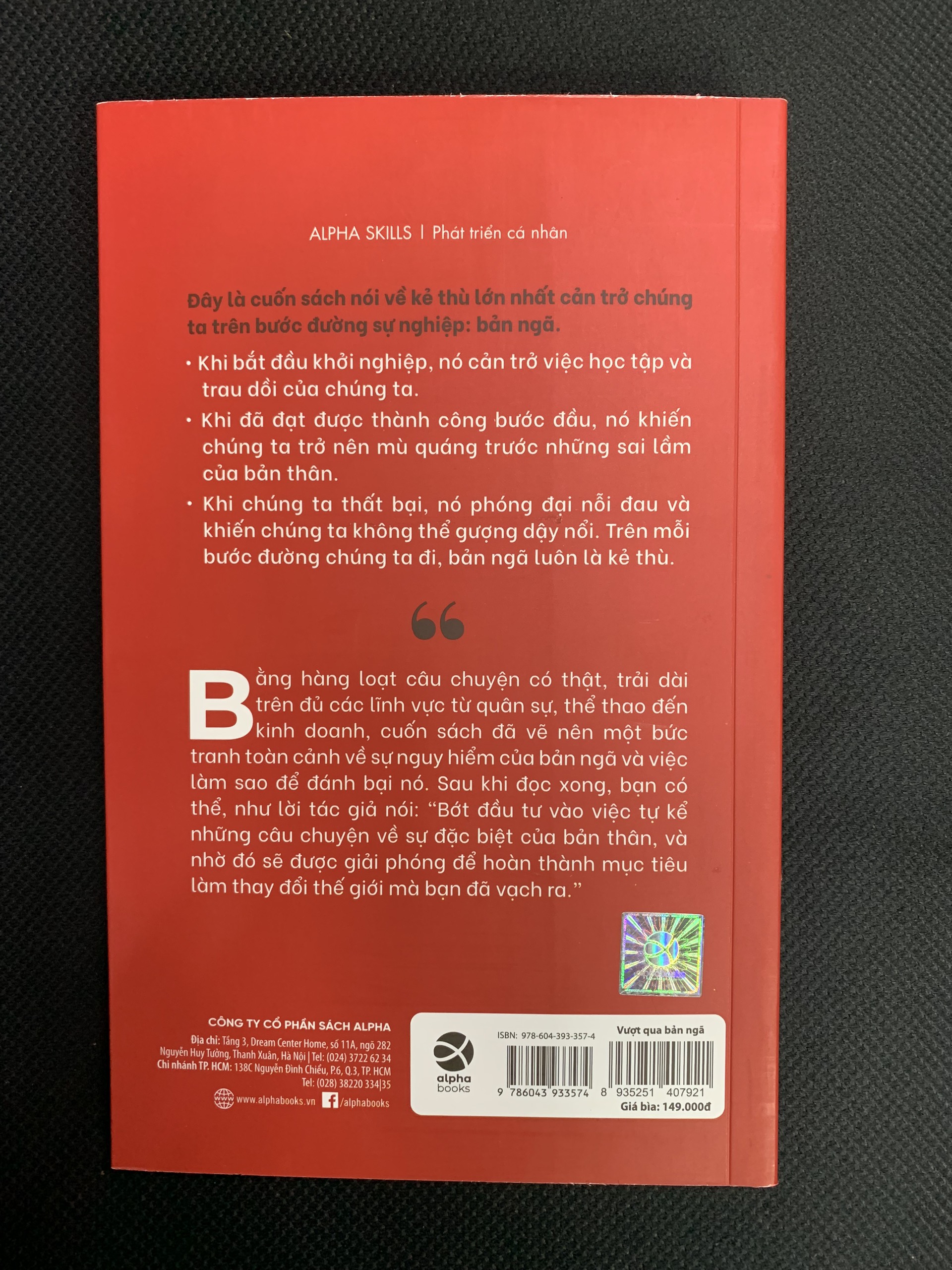 Đây là cuốn sách nói về kẻ thù lớn nhất cản trở ta trên bước đường sự nghiệp: bản ngã. Khi bắt đầu khởi nghiệp, nó cản trở việc học tập và trau dồi của ta. Khi đã đạt được thành công bước đầu, nó khiến ta trở nên mù quáng trước những sai lầm của bản thân. Khi ta thất bại, nó phóng đại nỗi đau và khiến ta không thể gượng dậy nổi. Trên mỗi bước đường ta đi, bản ngã luôn là kẻ thù