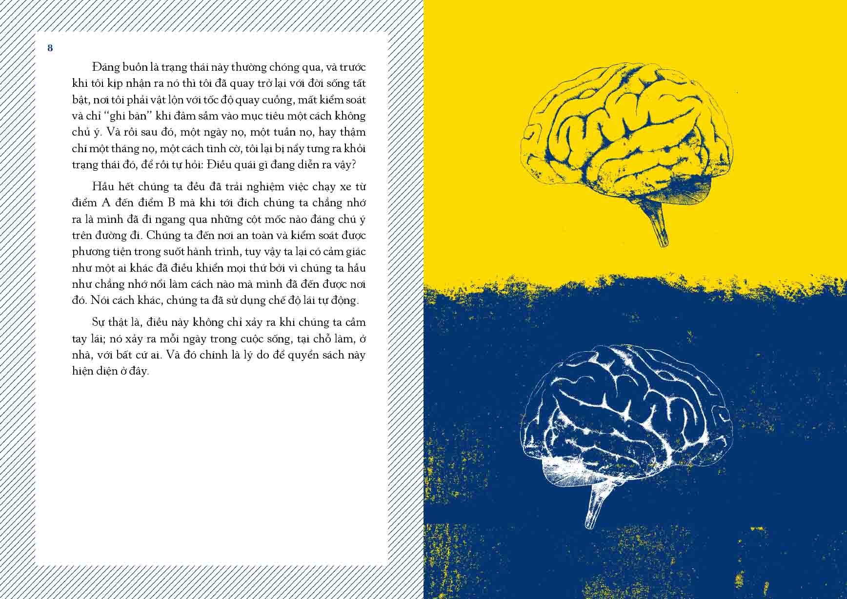 Cuộc đời là kết quả của tất cả những gì ta lựa chọn. Đáng buồn thay, phần lớn những lựa chọn của chúng ta trong một ngày đến từ cơ chế “lái tự động” của bộ não – hay những hành động theo thói quen và tiềm thức. Bớt lệ thuộc vào chế độ “lái tự động” sẽ giúp ta tạo nên sự khác biệt vô cùng lớn trong đời sống hằng ngày.