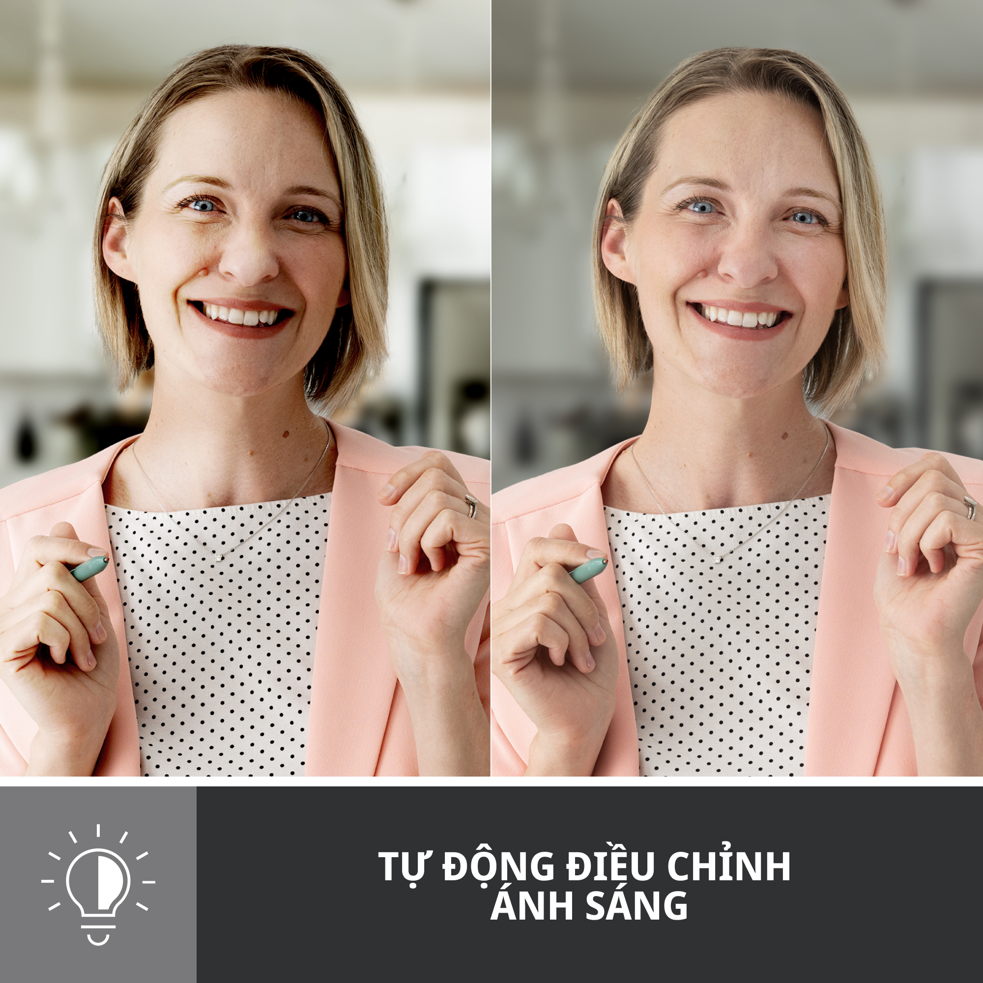 Thể hiện cảm giác tự tin, được nhìn thấy và được nghe thấy trong mọi cuộc gọi điện video. Logitech Brio 500 bao gồm các tính năng như tự động điều chỉnh ánh sáng trong điều kiện ánh sáng yếu, tự động đóng khung để bạn có thể di chuyển trong khi gọi và Chế độ hiển thị để trình bày các đối tượng trên bàn làm việc của bạn. Webcam Brio 500 tạo ra trải nghiệm cuộc họp Google, Teams hoặc Zoom chân thực hơn, cho phép bạn kết nối thực sự với những người khác.