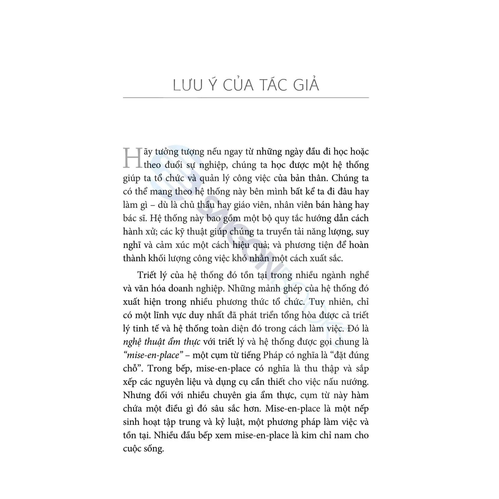 Mua tại TiktokWork Clean - Phương Pháp Tổ Chức Công Việc Và Đời Sống Như Một Đầu Bếp Chuyên Nghiệp “Trong Work Clean, Dan Charnas phác thảo sự tương đồng quý giá giữa các hệ thống được sử dụng để tổ chức một nhà bếp bận rộn và cách chúng ta tổ chức cuộc sống hàng ngày. Là một đầu bếp, tôi biết rất rõ tầm quan trọng của việc chuẩn bị, lập kế hoạch và làm việc sạch sẽ. Charnas mô tả cách áp dụng những nguyên tắc của mise-en-place cho các công việc ngoài bếp để cải thiện hiệu quả và chất lượng công việc, và chất lượng cuộc sống.”—Eric Ripert, đầu bếp điều hành và đồng sở hữu Nhà hàng Le Bernardin, một trong những nhà hàng tốt nhất thế giới bởi các tạp chí ẩm thực và nhận được đánh giá tối đa bốn sao từ The New York Times và ba sao từ Michelin Guide. "WORK CLEAN trong cuộc sống hàng ngày như một đầu bếp sao Michelin là một trong những con đường tốt nhất mà tôi đã tìm ra để tạo ra những tác phẩm một cách mạnh mẽ và sáng tạo sâu sắc." - Tiago Forte, nhà sáng lập của Forte Labs và tác giả của cuốn sách "Building a Second Brain" và "The PARA Method". Bạn có từng thắc mắc vì sao các đầu bếp tại các nhà hàng Michelin cao cấp hằng ngày thực hiện rất nhiều món ăn liên tục nhưng vẫn đảm bảo được chất lượng của chúng luôn đạt chuẩn nhất? Bạn thấy sự bận rộn và hỗn loạn trong bếp luôn diễn ra nhưng một cách nào đó, chúng dường như vẫn "rất có" quy tắc? “Mise en place” là thuật ngữ quen thuộc của giới ẩm thực, có nghĩa là “sắp xếp mọi thứ đúng chỗ”. Mise en place không chỉ là một nguyên lý áp dụng trong bếp, mà còn là một triết lý sống, áp dụng vào công việc và cuộc sống hằng ngày để bạn nâng cao năng suất, giảm căng thẳng và cải thiện cuộc sống thông qua các quy tắc được tác giả Dan Charnas đúc kết và chia sẻ trong “WORK CLEAN - Phương pháp tổ chức công việc và đời sống như một đầu bếp chuyên nghiệp”. “WORK CLEAN” được chia thành 3 “món”, bạn sẽ được: “Khai vị” với Sức mạnh của Work Clean: Khám phá cách thức hoạt động của mise-en-place và sự cần thiết của việc tổ chức trong mọi khía cạnh của cuộc sống. “Món chính” với Nguyên liệu để Work Clean: 10 nguyên tắc cơ bản tương ứng với một chương riêng biệt, “WORK CLEAN” giúp người đọc dễ dàng áp dụng các nguyên tắc của "mise en place" vào cuộc sống hàng ngày gồm: lên kế hoạch, sắp xếp không gian, làm tới đâu gọn tới đó, thực hiện bước đầu tiên, hoàn tất hành động, chậm lại để tăng tốc, mở mắt và dỏng tai, yêu cầu và đáp lại, kiểm tra và sửa chữa, tận dụng tối đa. Mỗi nguyên tắc không chỉ là một hành vi cụ thể mà còn là một khía cạnh quan trọng trong việc xây dựng thói quen làm việc hiệu quả. “Tráng miệng” với Work Clean như một lối sống: Hướng dẫn bạn xây dựng thói quen làm việc gọn gàng, từ đó phát triển sự nghiệp và cuộc sống cá nhân một cách bền vững. Để thực hiện cuốn sách này, tác giả đã tiến hành phỏng vấn hơn 100 người trong giới ẩm thực, bao gồm các bếp trưởng, đầu bếp, giảng viên, học viên và chủ nhà hàng. Ông cũng dành nhiều tháng để quan sát các căn bếp mà họ làm việc, từ đó, hé lộ bí quyết sắp xếp và giải quyết các vấn đề trong cuộc sống. Ngoài ra, tác giả cũng xây dựng các bài tập ngắn để bạn thực hành mise en place một cách dễ dàng. “mise-en-place là một triết lý về cách bắt đầu và hoàn thành mọi thứ, cách tăng tốc và cách chậm lại, cách nói “có” với một số việc và “không” với một số việc khác. Và như vậy, khi được thực hành một cách có ý thức, mise-en-place có thể hữu ích trong việc tạo ra sự cân bằng.” “Mỗi giai đoạn công việc lại đòi hỏi một cách mise-en-place khác nhau và trật tự sắp xếp trong giai đoạn trước đó cần được “xóa dấu vết” trước khi trật tự mới được tạo ra” "WORK CLEAN - Phương pháp tổ chức công việc và đời sống như một đầu bếp chuyên nghiệp" không chỉ dành cho những người làm việc trong ngành ẩm thực mà còn cho bất cứ ai muốn cải thiện kỹ năng quản lý thời gian và công việc. Cuốn sách cung cấp những bài học quý giá, giúp bạn nhận ra rằng sự chuẩn bị và tổ chức có thể mang lại sự thành công trong mọi lĩnh vực.