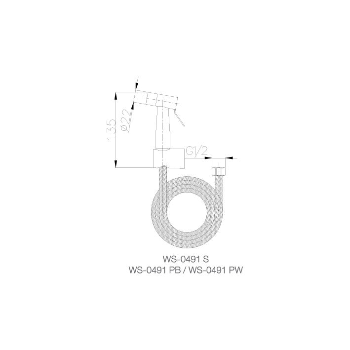 ✨WS-0491S - Vòi xịt rửa lạnh - kèm dây 1.2m - INOX SUS 304
