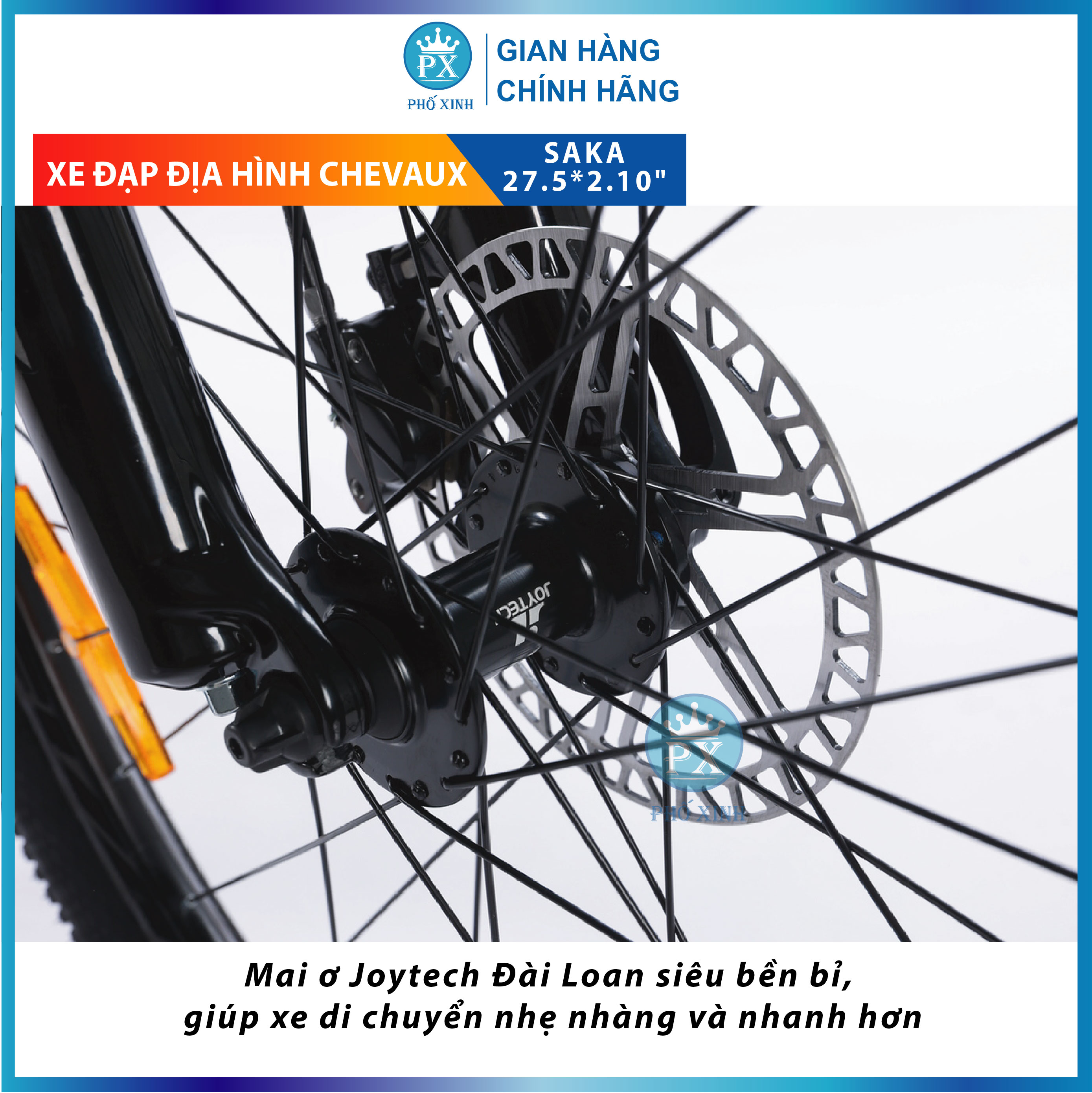 Xe đạp Chevaux Saka là mẫu xe địa hình băng đồng với nước sơn tĩnh điện cao cấp và theo phong cách ombre đầy ấn tượng, cá tính. Đây là một “ngựa chiến” hoàn hảo cho những ai muốn bước chân vào thế giới của những cung đường hoang dã, và cần một chiếc xe leo núi thực thụ với mức giá hợp lý.