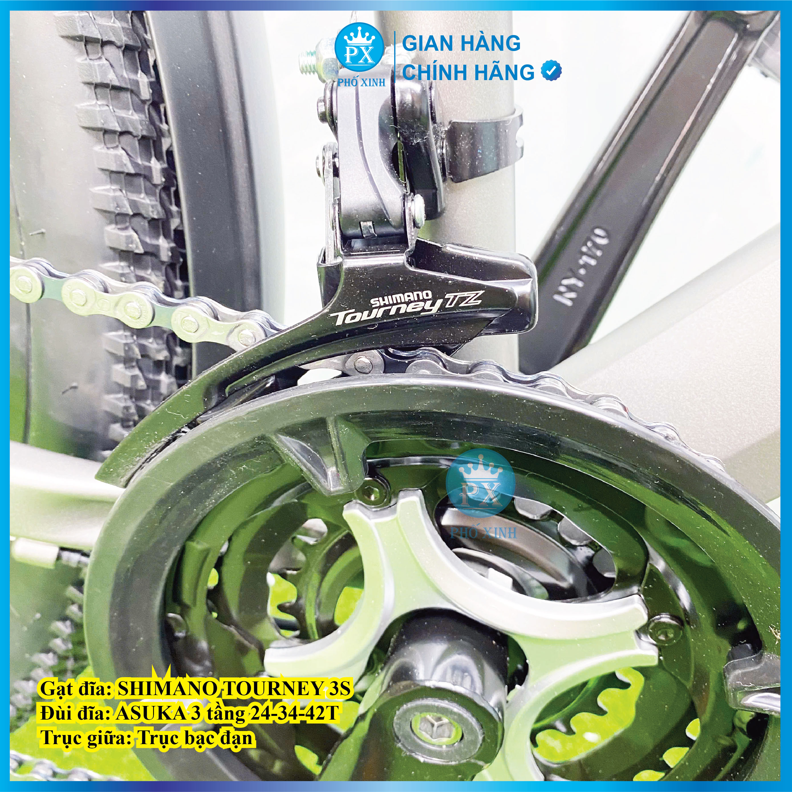 Mua tại TiktokXE ĐẠP ĐỊA HÌNH ASUKA BÁNH 26 inch KHUNG NHÔM ( mẫu mới) ️ Khung: Nhôm ALu ️ Càng/Phuộc: Giảm xóc , có khoá hành trình tuỳ chỉnh ️ Tay đề: S H I M A N O 3*7 ( 21 tốc độ) ️ Gạt đĩa: S H I M A N O TOURNEY ️ Củ đề: S H I M A N O TOURNEY ️ Trục giữa: bạc đạn ️ Phanh: Phanh đĩa cơ nhôm ️ Vành: Nhôm 2 lớp ️ Mayer: nhôm ️ Tay lái/Ghi-đông: thép ️ Pô-tăng: Nhôm ️ Cọc yên: Nhôm ️ Lốp : K E N D A 26