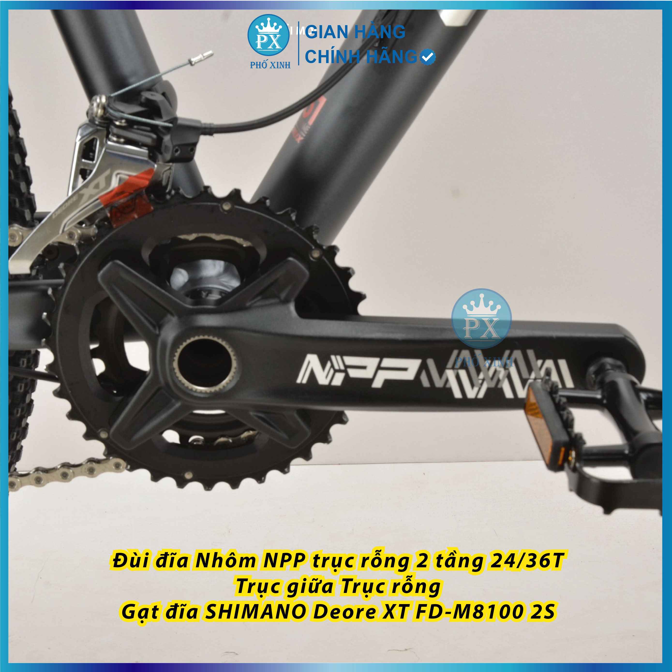 - Khung hợp kim nhôm không mối hàn - Tay đề Shmn 3 đĩa 9 líp ALTUS - Cùi đề Shmn ALTUS - Giò dĩa Prowheel - Gạt đĩa Shmn ALTUS - Phuộc dầu có