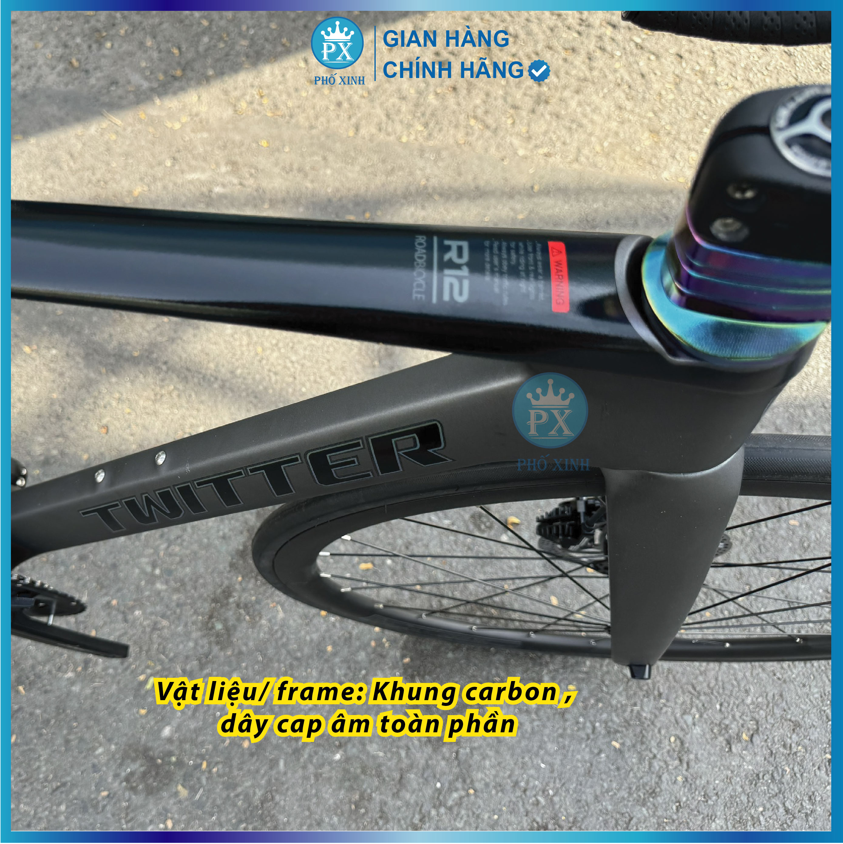 Mua tại TiktokXE ĐẠP ĐUA TWITTER R12 PRO RS24 2024 Twitter R12 RS24 là chiếc cao cấp cực HOT tới từ thương hiệu xe đạp thể thao nổi tiếng (thương hiệu Germany) . Xe sử dụng bộ group Retrospec 2x12 Speeds trên những dòng xe đua cao cấp, khung sườn carbon siêu nhẹ và bên bỉ cùng những điểm nâng cấp khác biệt so với những thiết kế trước đây, Twitter R12 RS24 trở thành mẫu xe được săn đón hàng đầu của dòng xe Twitter Carbon THÔNG SỐ KỸ THUẬT KHUNG