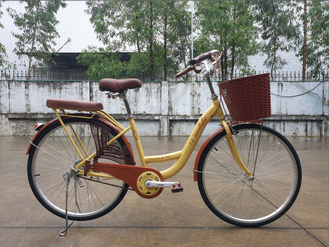 THÔNG TIN CHI TIẾT Khung : thép Bánh xe : kích thước 24 inch Vành : thép Nan hoa : 36 Giỏ xe thiết kế cổ điển : chất liệu nhựa PVC, kích thước 27