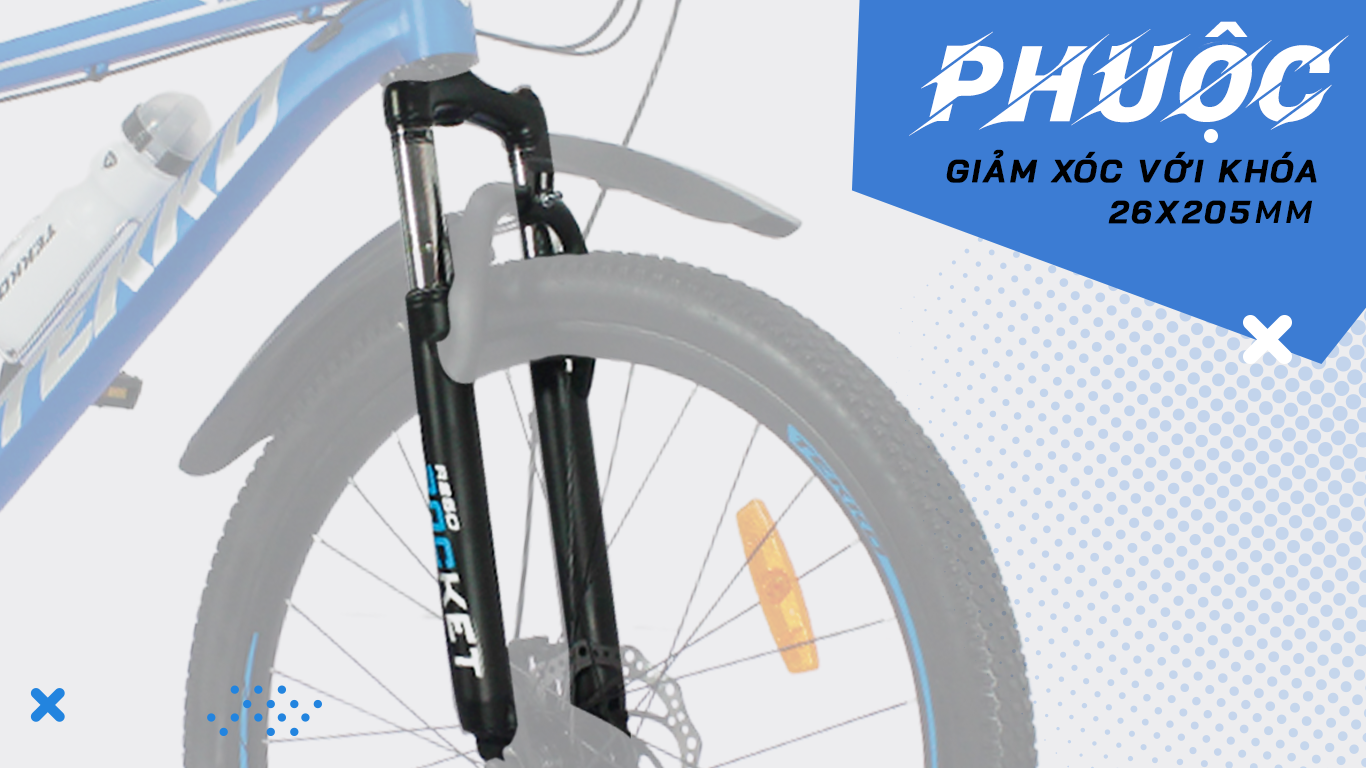 Thông Số Kỹ Thuật: Khung xe : thép 26 x17 Phuộc : Giảm sóc với khóa 26 x 205 mm Ghi đông : tay lái thẳng - thép 31,8 x 28,6 x620 mm Cân nặng