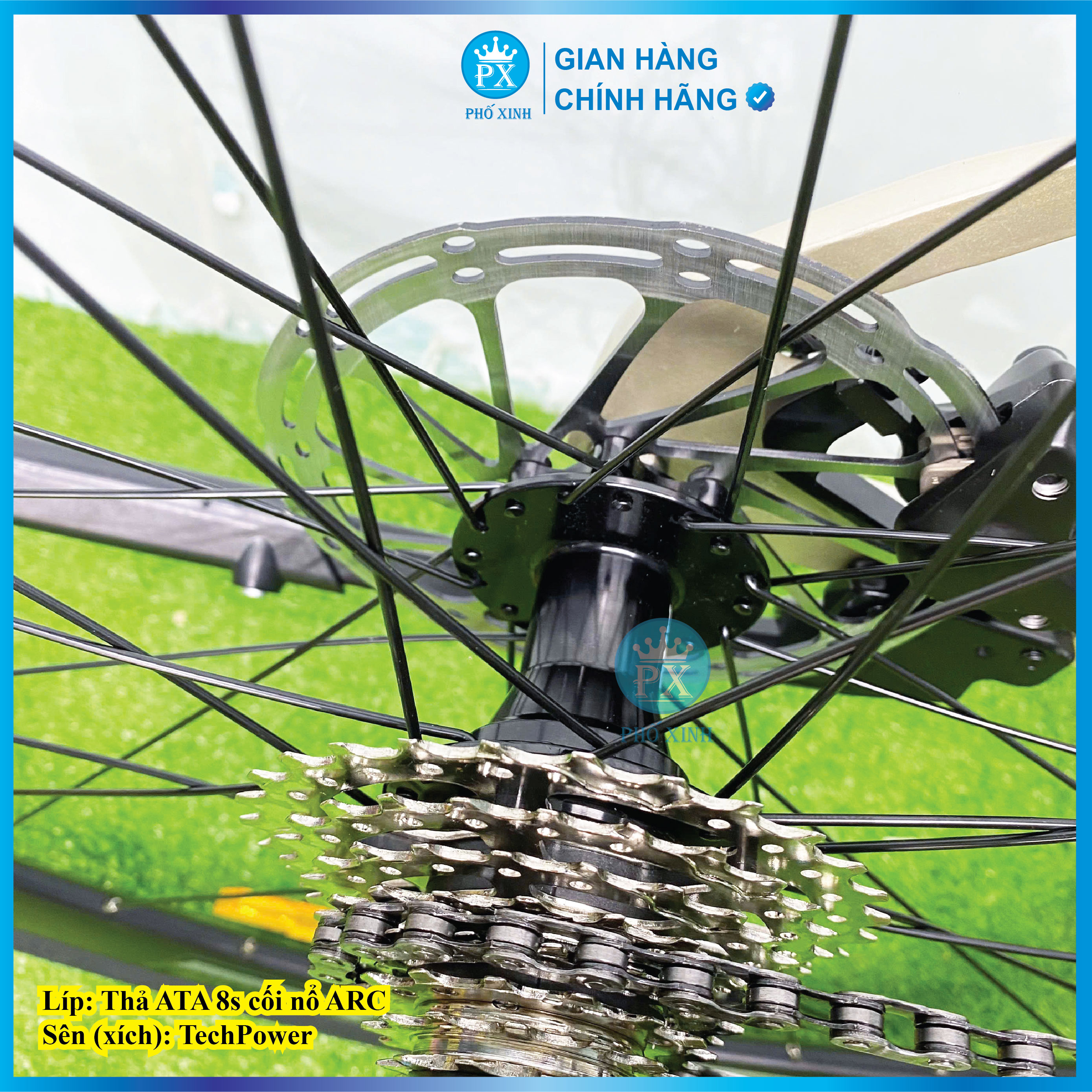 Thông số kĩ thuật: Kích thước bánh xe: Lốp 27.5inch I Hợp kim nhôm 2 lớp Khung sườn: Hợp kim nhôm nước sơn tĩnh điện Phụ kiện: Phanh đĩa - Yên da - Bàn đạp
