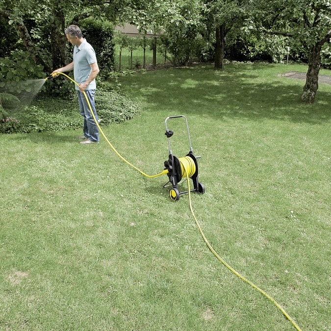 - Xe đẩy ống HT 4.520 Kit 1/2; mới, được lắp ráp hoàn chỉnh với bộ lưu trữ phụ kiện cho máy phun, ống phun, , cũng như các móc lưu trữ cho ống ngắn giúp việc kéo ống dài qua khu vườn không còn cần thiết nữa vì xe đẩy có thể điều khiển, luôn ở bên cạnh người dùng để tưới nước.