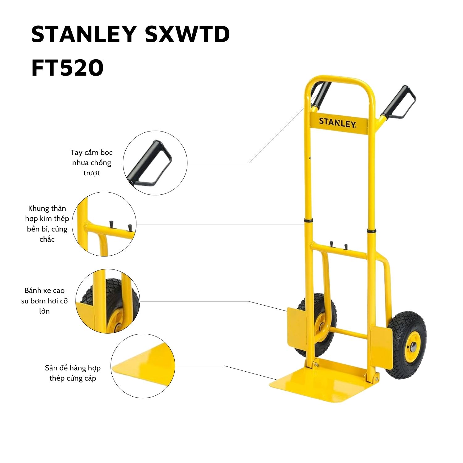 Xe đẩy hàng gấp gọn 2 bánh Stanley FT520 tải trọng 120kg thương hiệu Stanley đến từ Mỹ Xe đẩy hàng 2 bánh Stanley FT520 có bánh xe cao su bơm hơi cỡ lớn, giúp