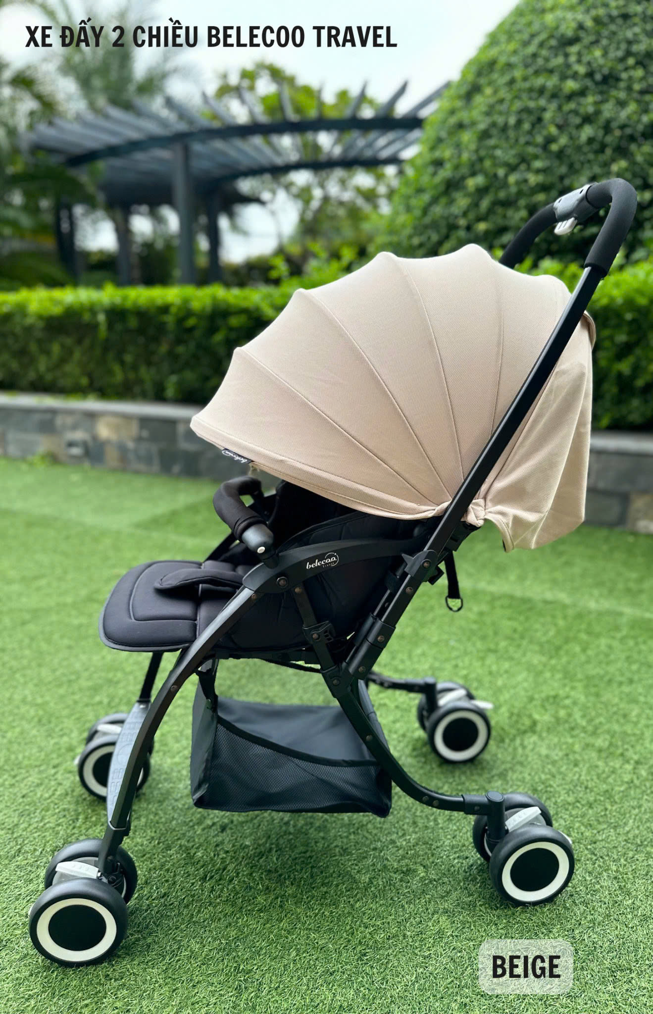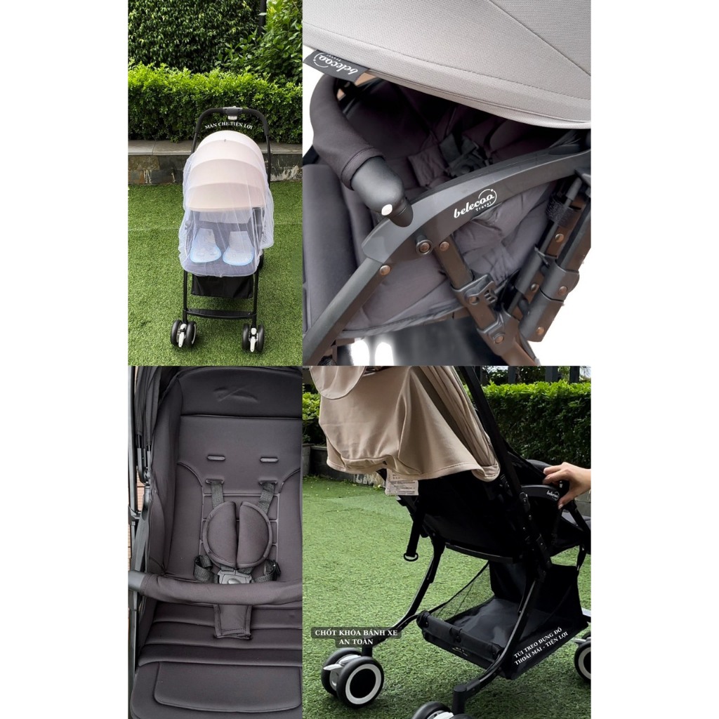 Xe đẩy Belecoo Travel 2 chiều 3 tư thế siêu nhẹ ️ Xe dáng thể thao gầm cao chống bụi và được làm bằng hợp kim nhôm vô cùng vững chắc, chịu trọng lượng lên