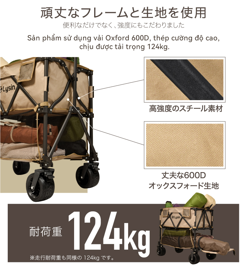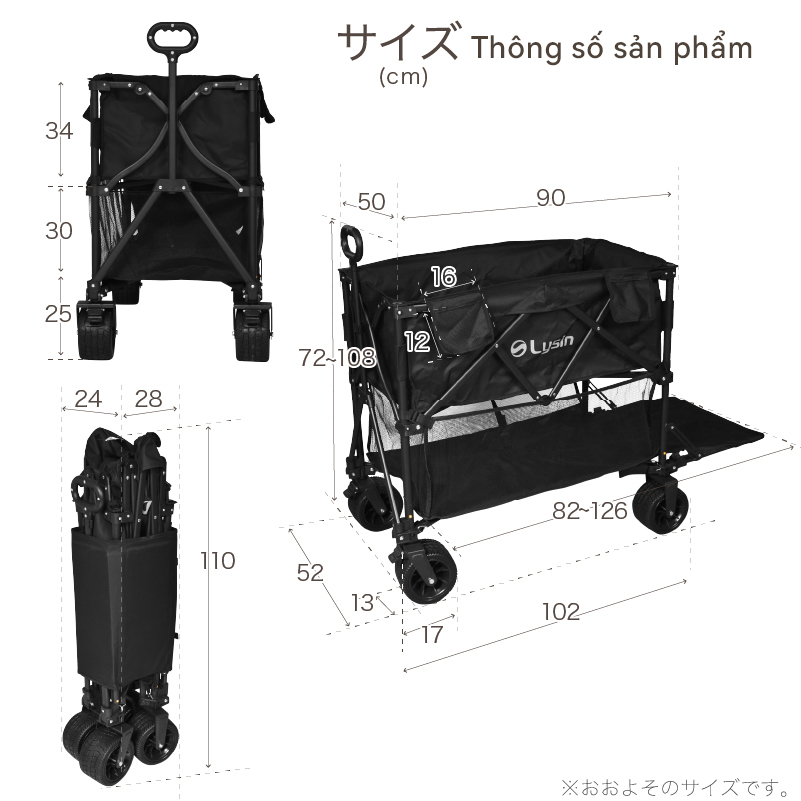 ✨Xe kéo dã ngoại 2 tầng ngoài trời du lịch cắm trại, picnic đa năng bánh xe rộng có khóa cố định dung tích 300l gấp gọn được camping