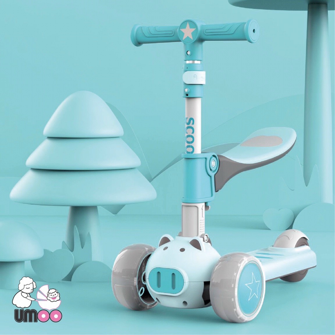 Xe trượt chòi chân Scooter Umoo 3kg cho bé 1-5 tuổi nâng hạ độ cao, bánh xe có đèn phát sáng Xe trượt Scooter cho bé Umoo 2 trong 1 hình heo vừa là xe