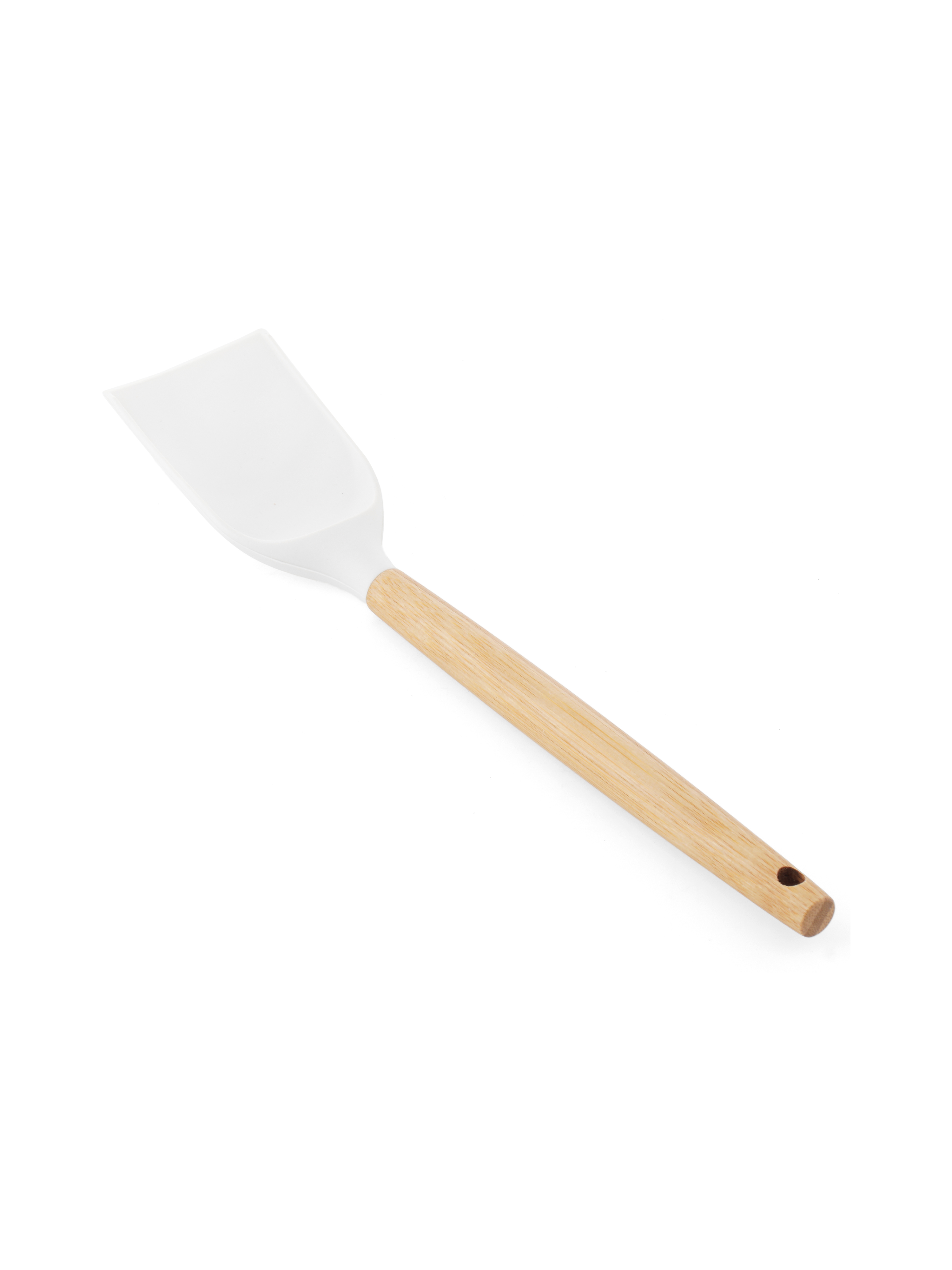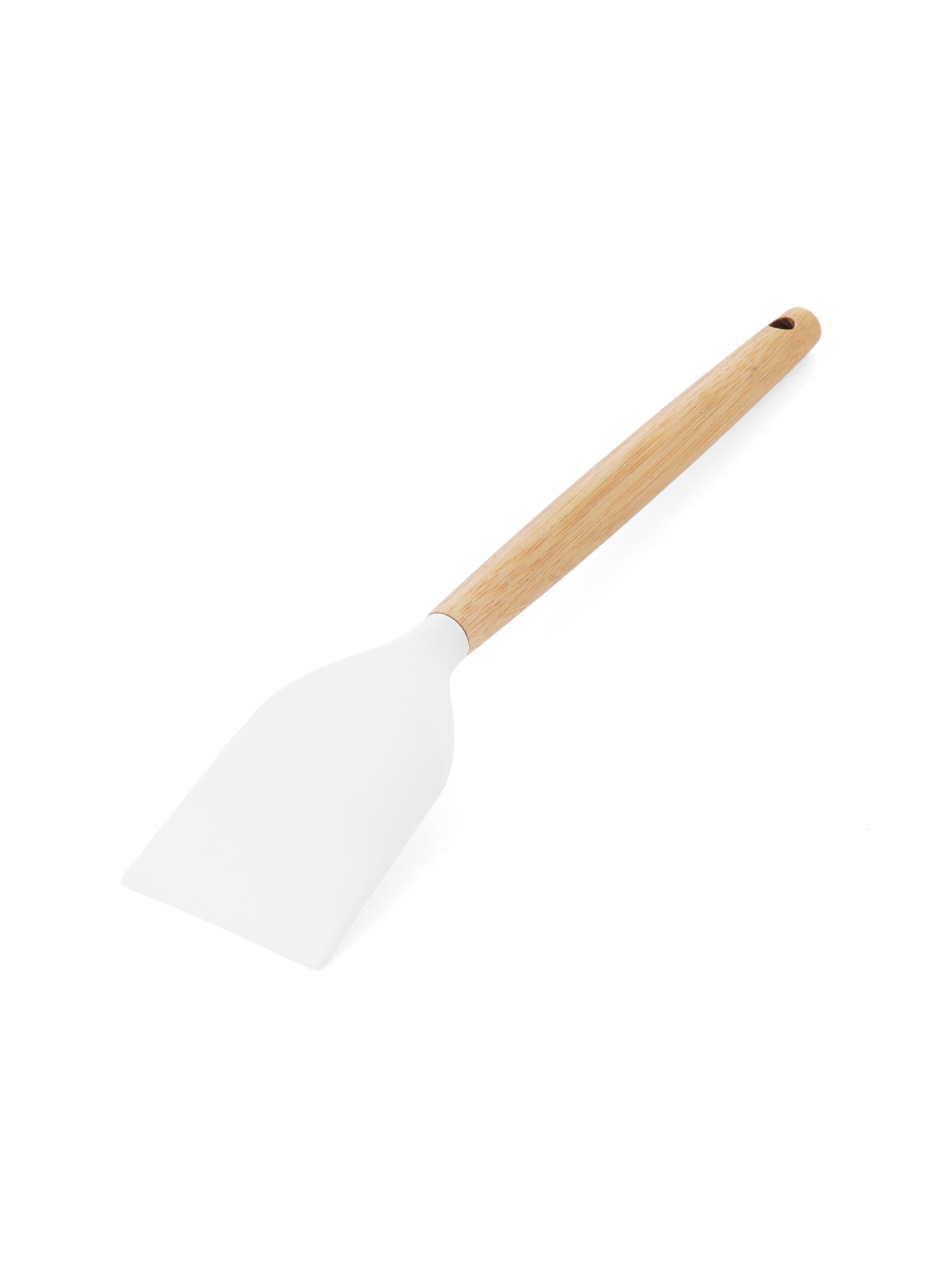 Xẻng silicone chiên xào kích thước : 305x65x25 màu sắc: trắng chất liệu : Bamboo / Silicone / Nylone