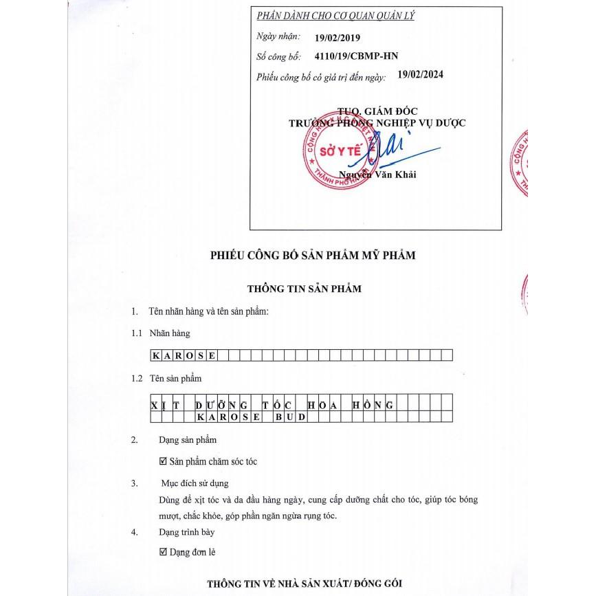 Xịt dưỡng tóc hoa hồng KAROSE BUD - 100ml Được làm từ 5 loại hoa lá: hoa hồng nhung cổ, hoa bưởi, hoa bụt, hương nhu và sả chanh. Dùng để xịt tóc và da