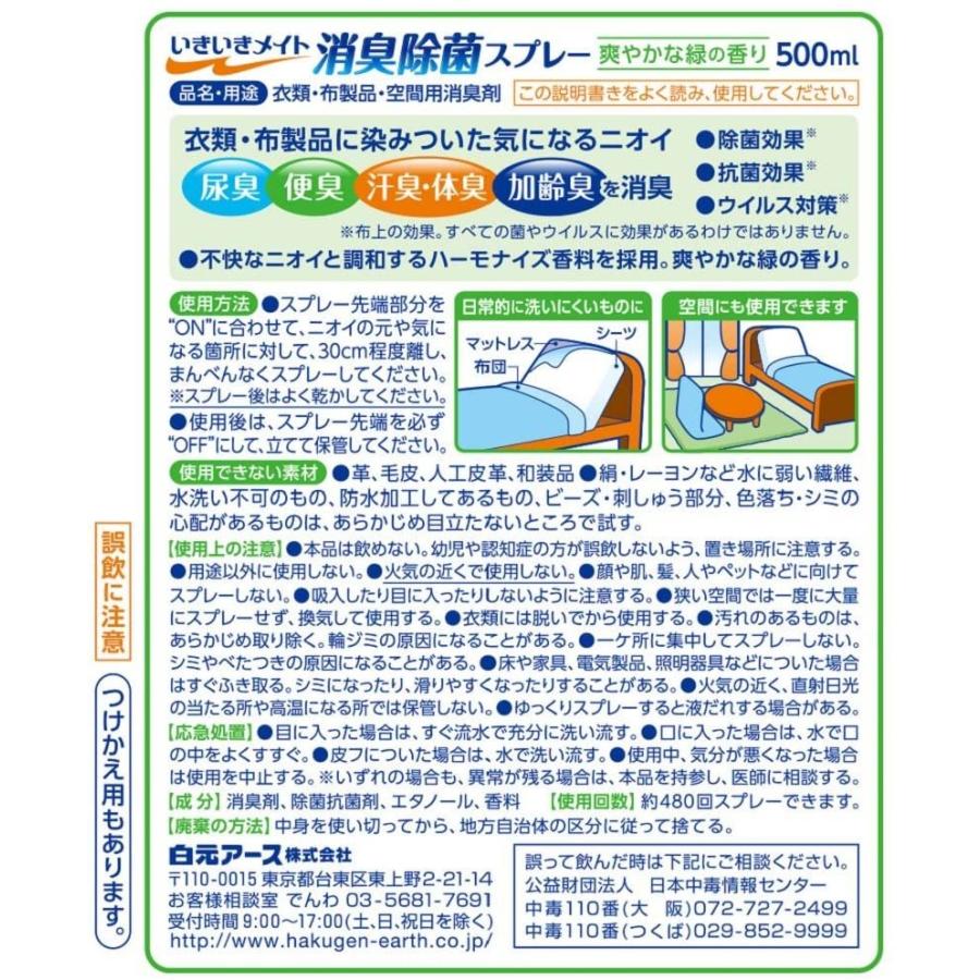 ✨Xịt Khử Mùi Và Khử Khuẩn Quần Áo Lively Mate Hakugen Earth Nhật Bản (500ml)