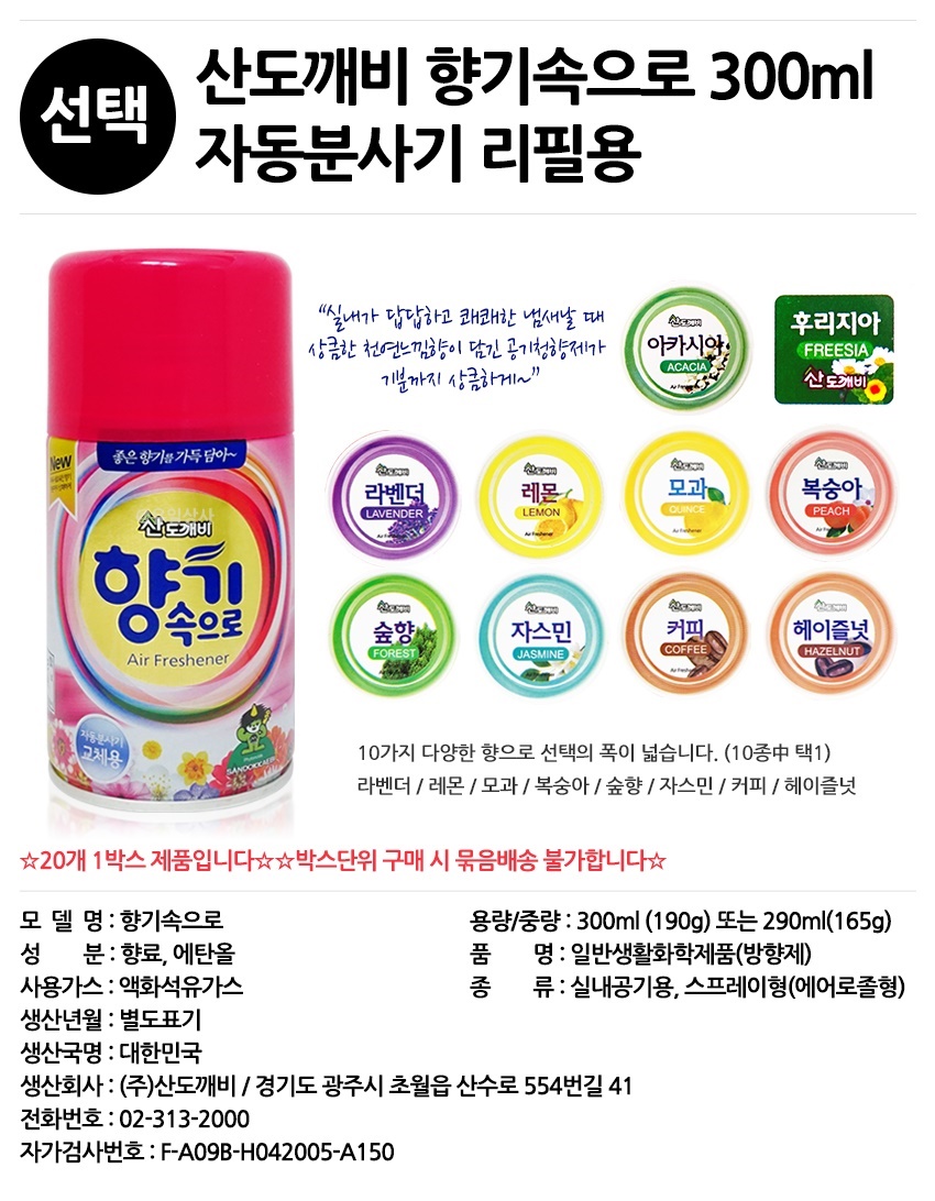 Xịt phòng Sandokkaebi chai 300ml ( sản phẩm có nhiều mùi hương để bạn chọn lựa ) - Hàng nội địa Hàn Quốc. * Thành phần: Tinh dầu thơm chiết xuất hoàn toàn từ thiên nhiên,