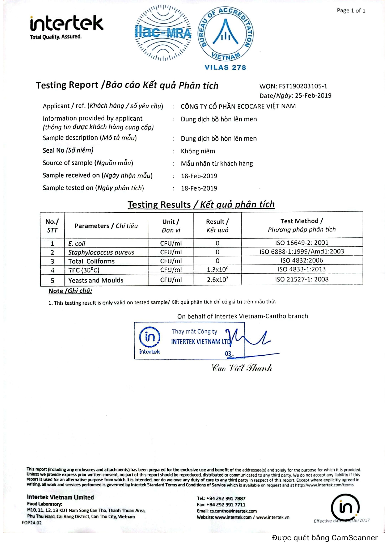 • Sử dụng Công nghệ lên men bồ hòn đầu tiên tại Việt Nam được Cơ quan INTERTEK - Vương quốc Anh chứng nhận.