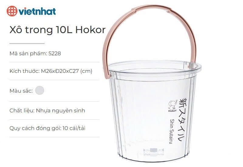 Xô trong 10L HOKORI nhựa VIỆT NHẬT cao cấp