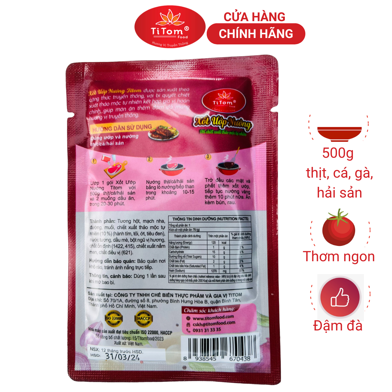 Cảm ơn quý khách đã tin tưởng chọn lựa sản phẩm của Titomfood - Hương vị truyền thống! - THÔNG TIN SẢN PHẨM -Xốt ướp nướng Titom là gia vị nêm sẵn hoàn chỉnh dùng