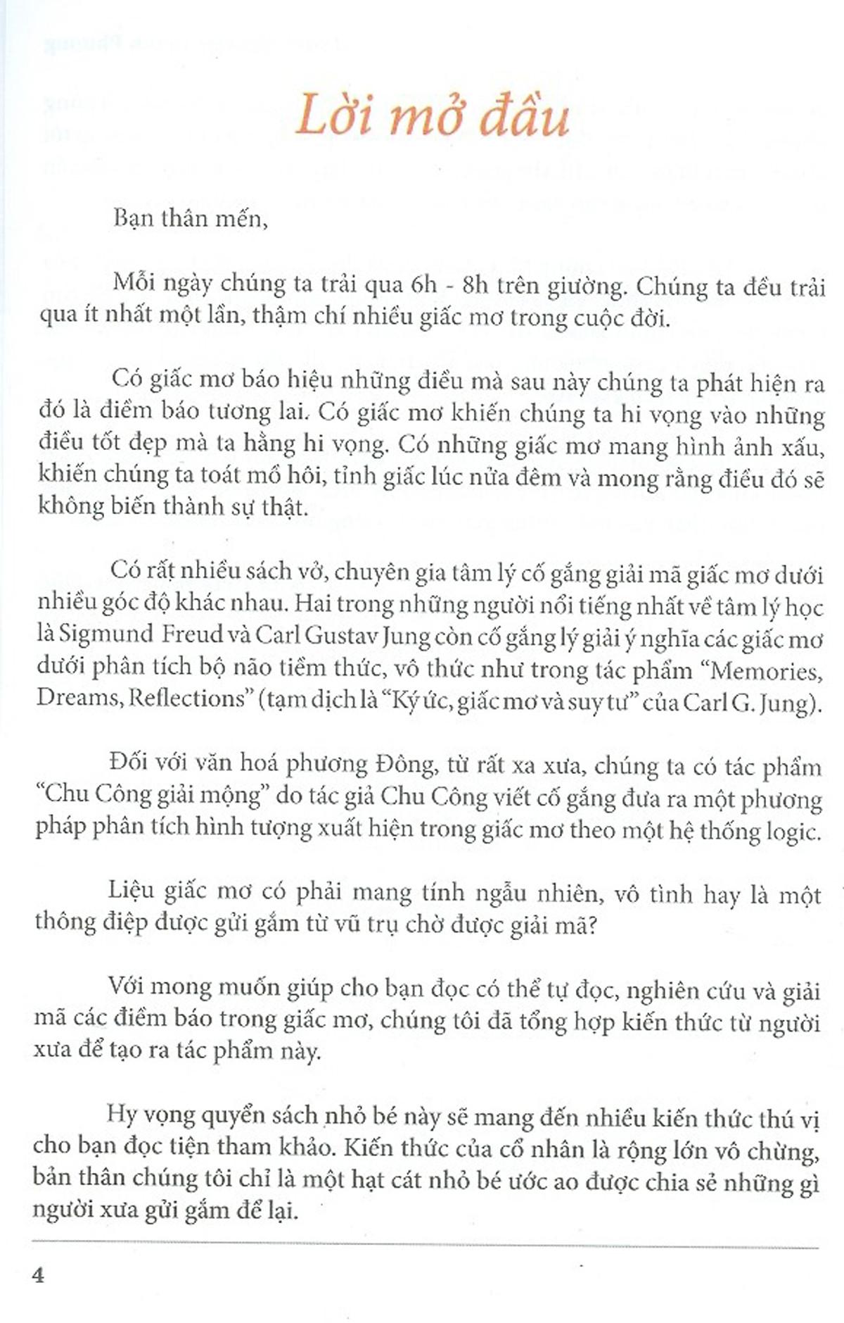 Có giấc mơ báo hiệu những điều mà sau này chúng ta phát hiện ra đó là điềm báo tương lai. Có giấc mơ khiến chúng ta hi vọng vào những điều tốt đẹp. Có những giấc mơ mang hình ảnh xấu, khiến chúng ta toát mồ hôi, tỉnh giấc lúc nửa đêm và mong rằng điều đó sẽ không biến thành sự thật.