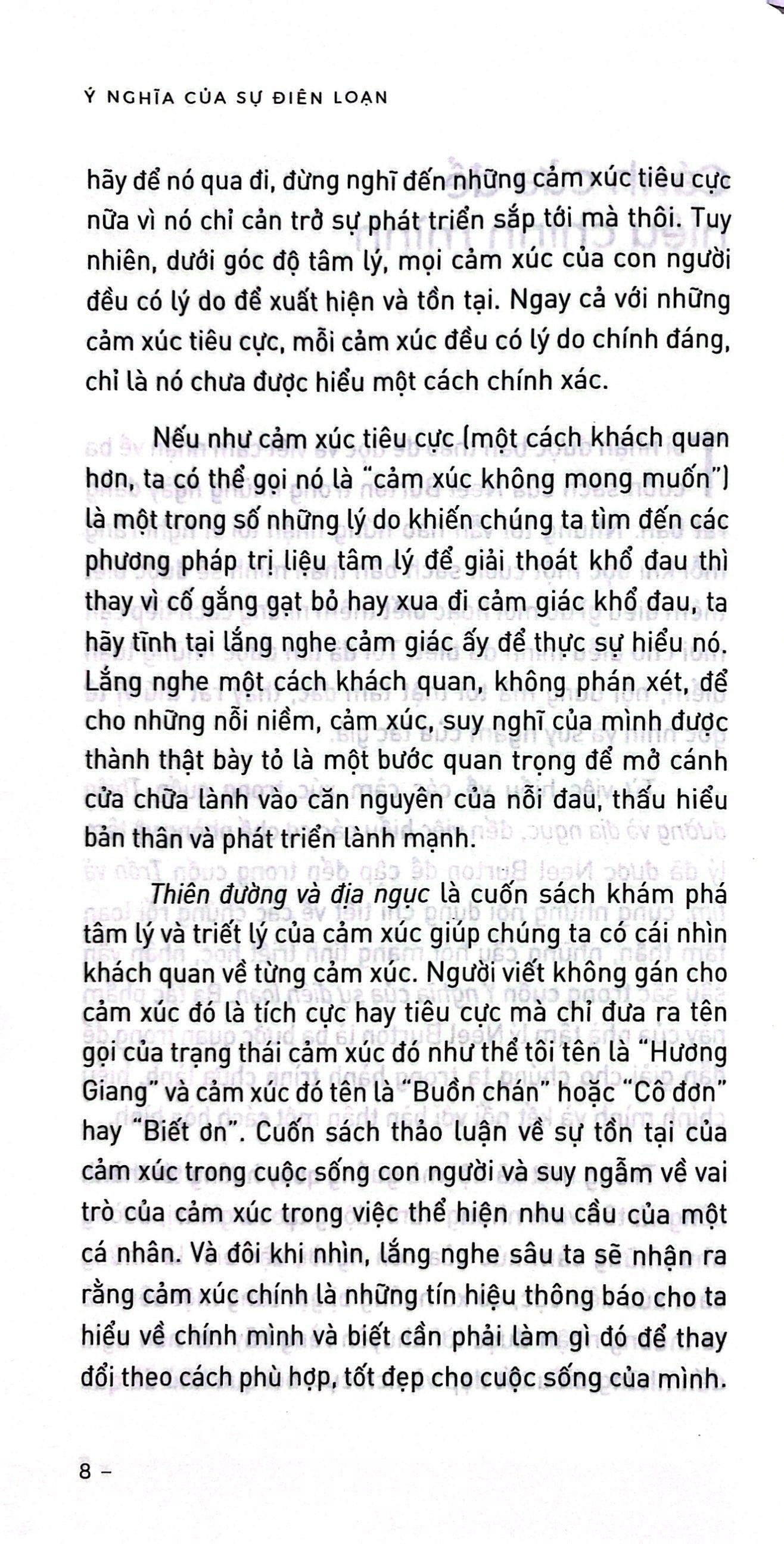 “Ý nghĩa của sự điên loạn – Cách nhận diện nguồn cơn và xử lý những nỗi đau tinh thần sâu trong bạn” là cuốn sách dành cho bất cứ ai. Những bạn đang có mong muốn định hình lại bản thân.