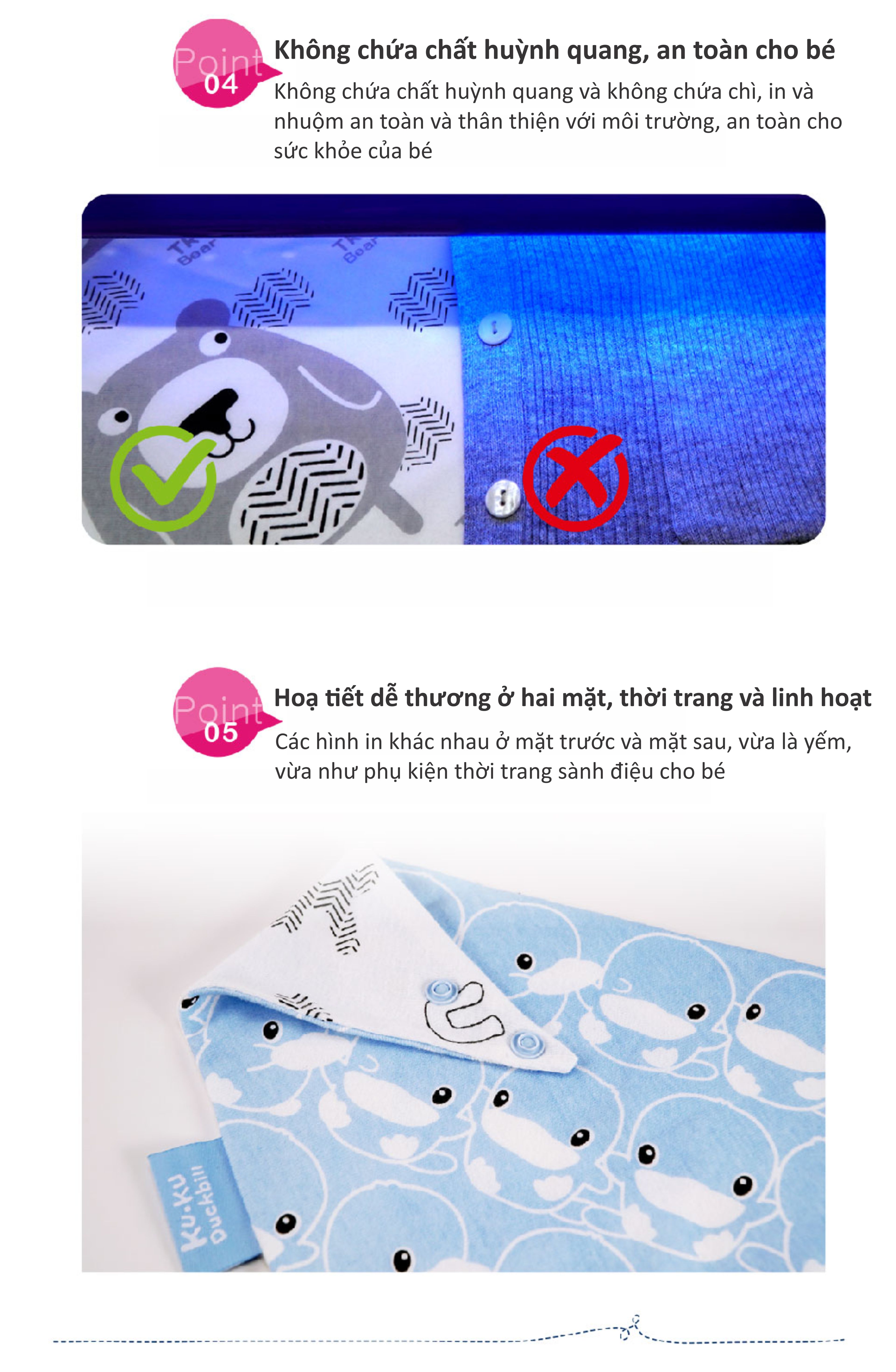 - Chất vải cotton mềm mịn, an toàn với thiết kế tạo hình dễ thương dùng được cả 2 mặt, vừa là yếm, vừa như phụ kiện thời trang sành điệu cho bé;