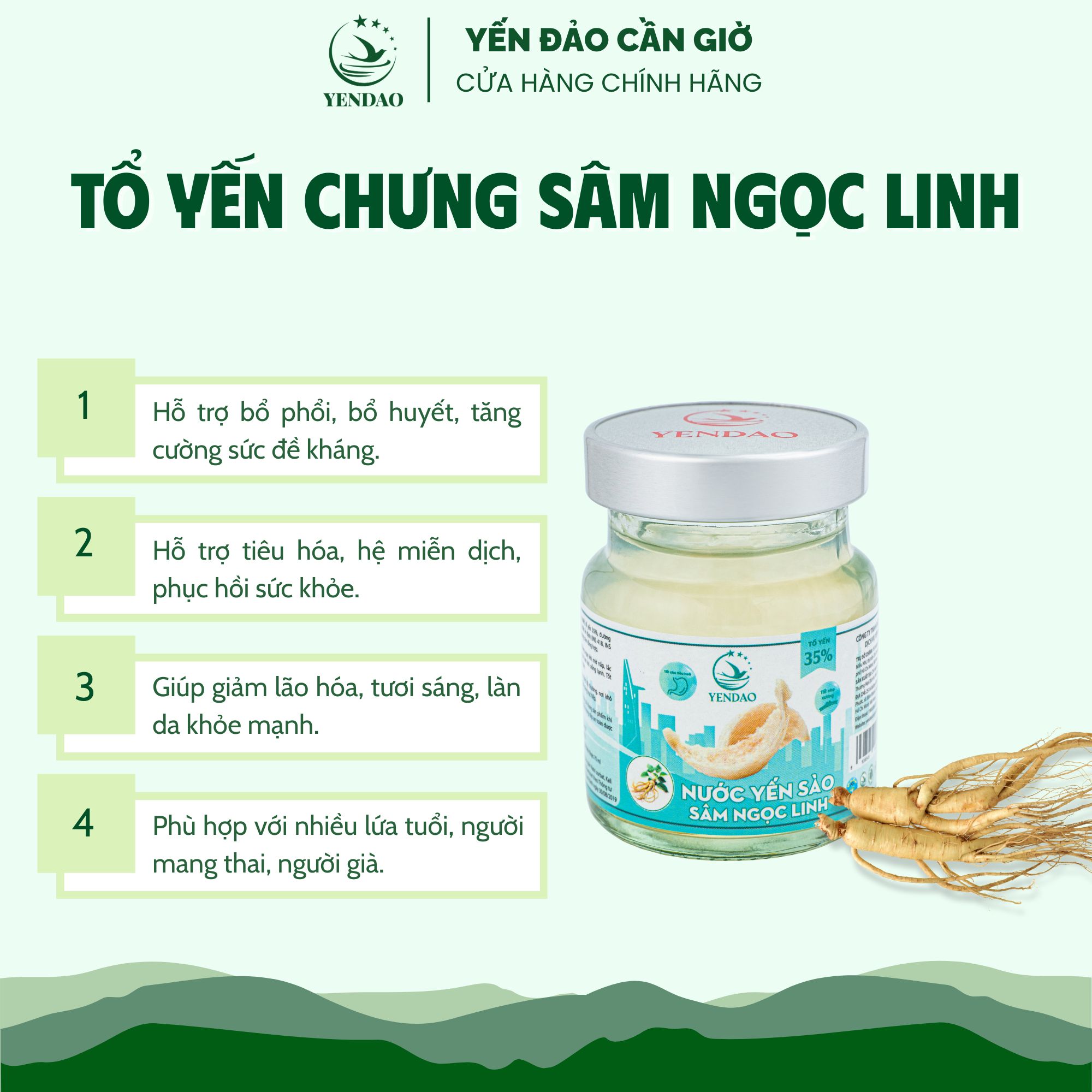 • Loại sản phẩm: Yến Hũ Ngọc Linh Sâm